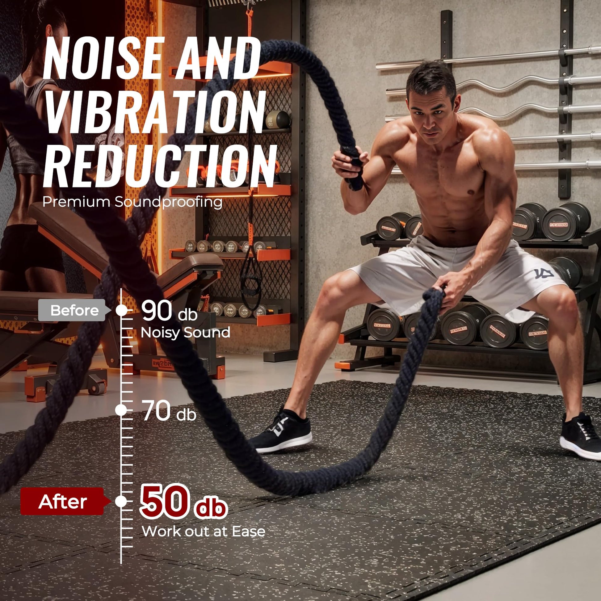 - 【Upgraded Dual-Layer Design.】A high-density EVA foam base combined with a sturdy EPDM rubber top. This construction can bear heavy exercise equipment, ensuring it won’t tear easily due to weight or vigorous movements, guaranteeing long-lasting resistance to wear and tear.
