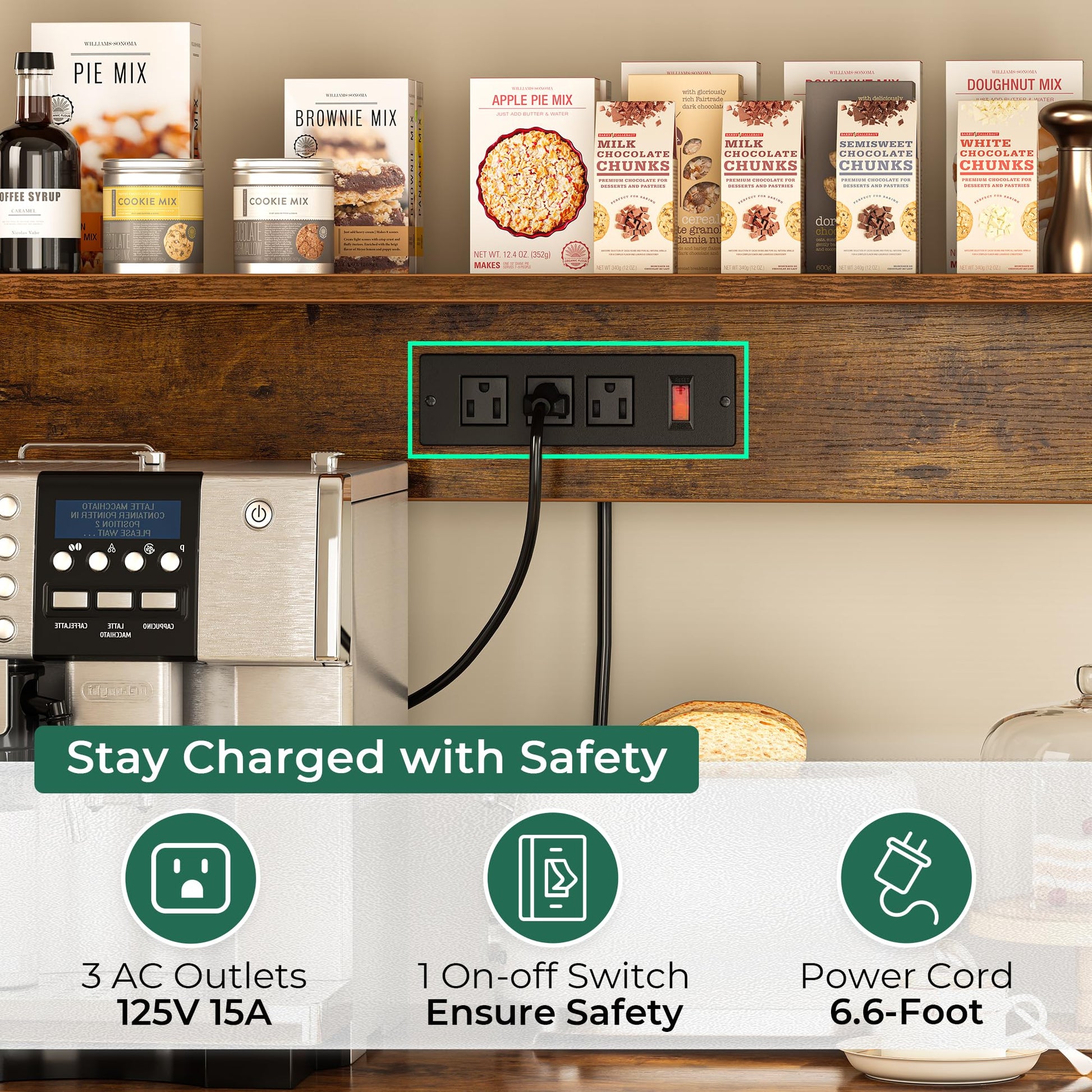 - 【3 AC Outlets & 1 On-off Switch】 Delight baking enthusiasts or coffee lovers in no time with a power strip built into the kitchen shelf rack! Plug in your kitchen supplies within reach, more charging spots, and more safety with the switch off when they are not in use. All for a tidy and safe kitchen space