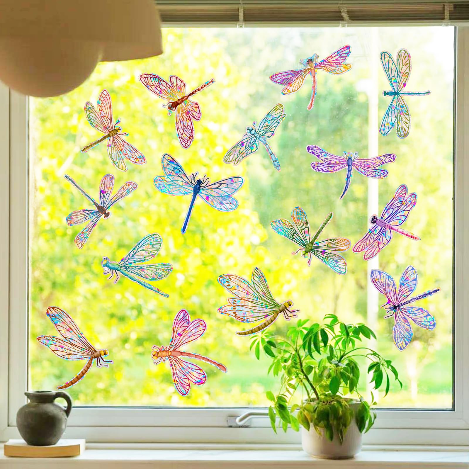 Suplanet Dragonfly Window Clings for Glass Windows, Bird Anti Collision Window Stickers for Birds, Window Decals to Prevent Bird Strikes, Non Adhesive Window Prism, Sun Catchers Indoor Window