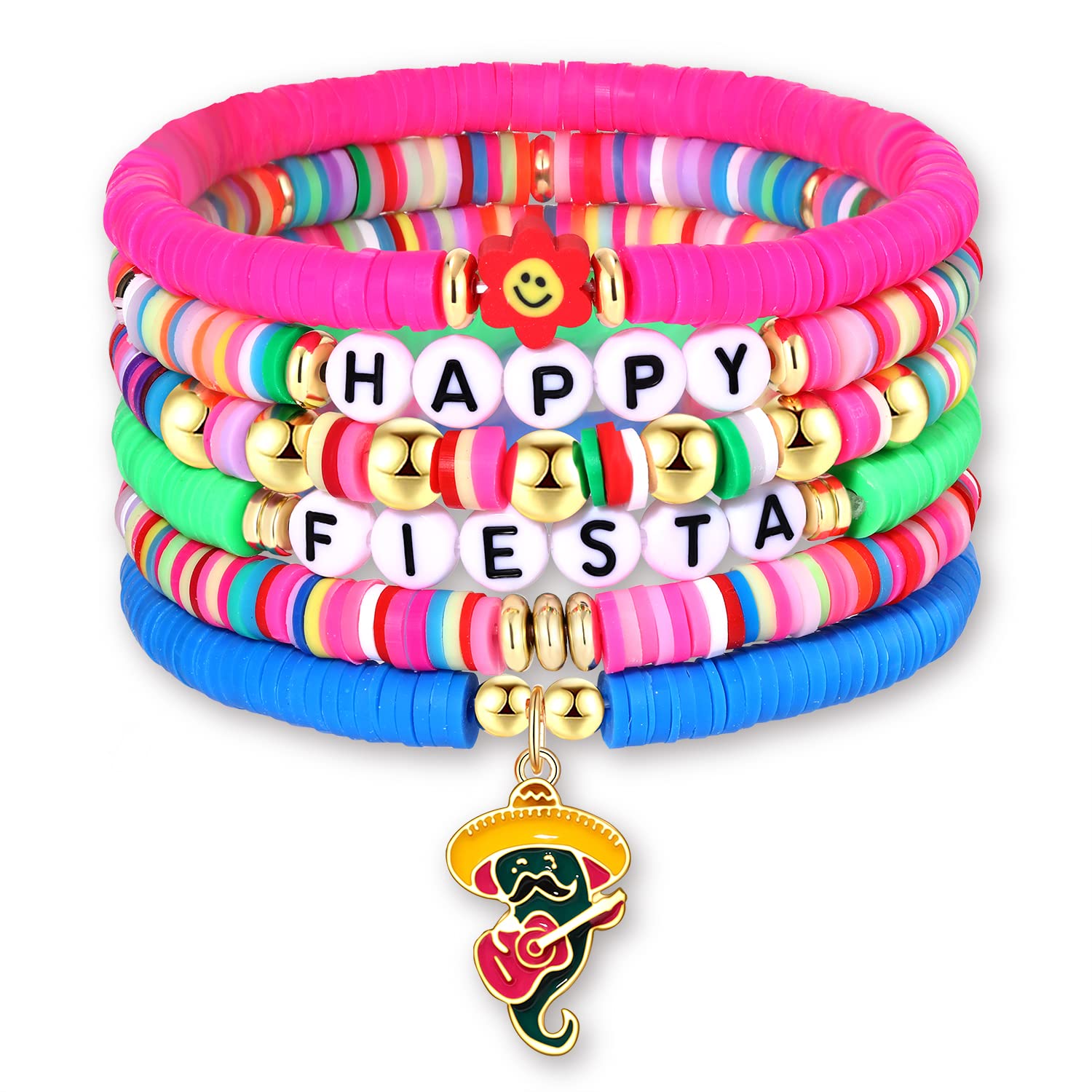 Surfer Heishi Bracelets for Women Stackable Rainbow Vinyl Disc Clay Beaded Stretch Bracelets Elastic Layering Friendship Bracelets Boho Summer Beach Jewelry
