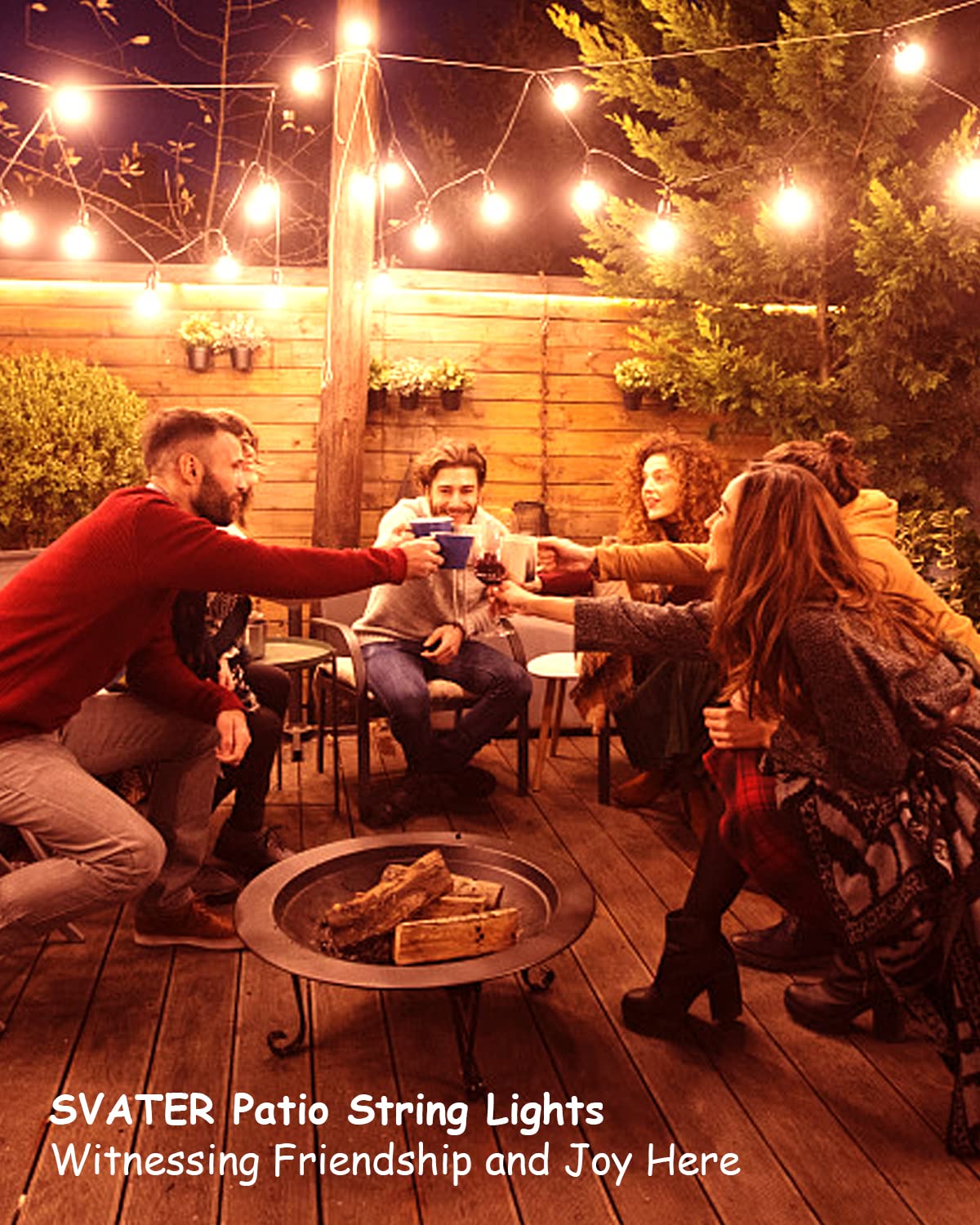 - Dimmable and Practical: Svater outdoor lights work with dimmer (NOT included) to adjust the lighting. Already assembled, plug and play, hang up the string lights effortlessly. Each bulb works individually, if one goes out, the rest will work fine