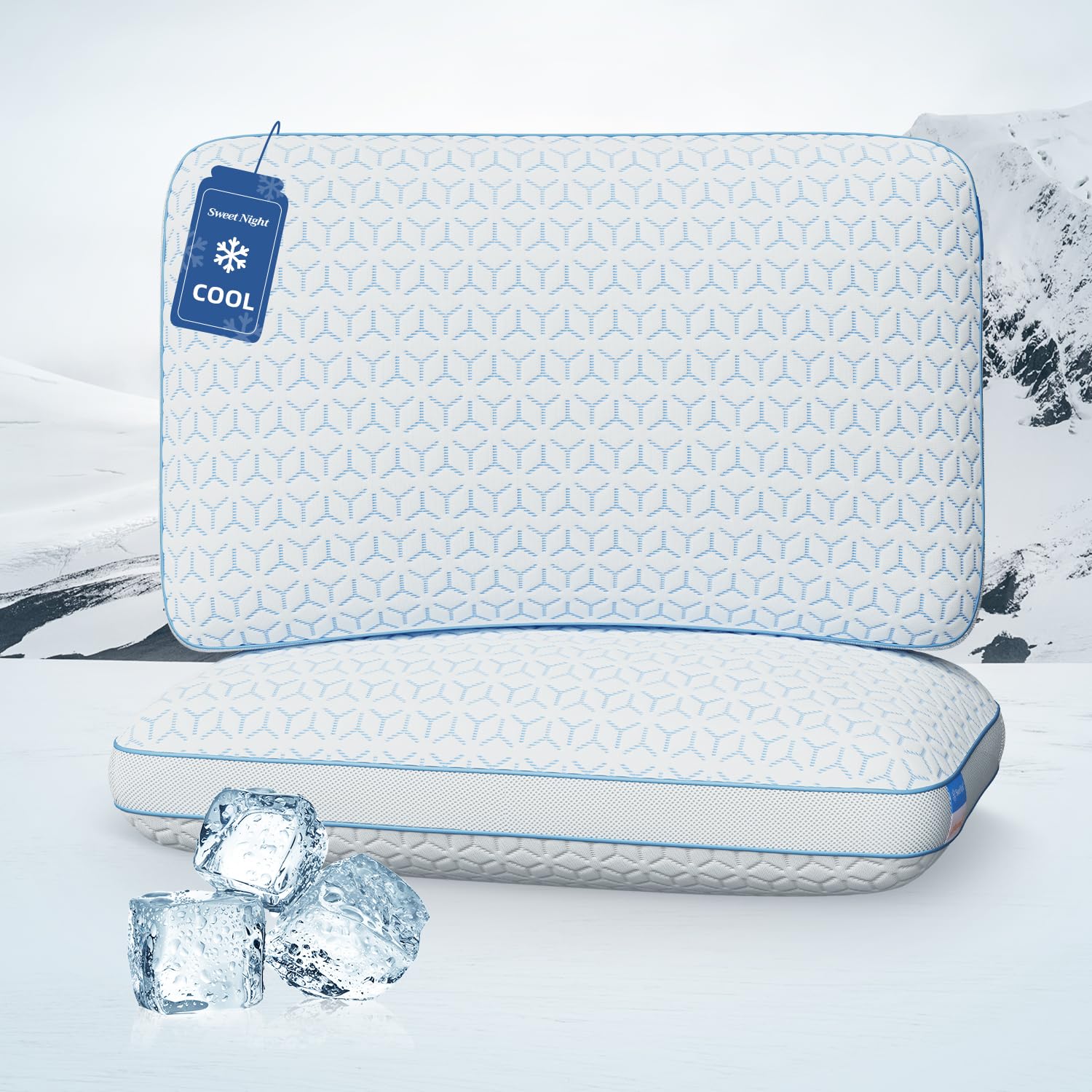 Sweetnight Cooling Pillows Queen Size Set of 2, Shredded Memory Foam Pillows 2 Pack for Hot Sleepers, Cold Bed Pillows for Sleeping, Washable with Removable Cover, Cool Night