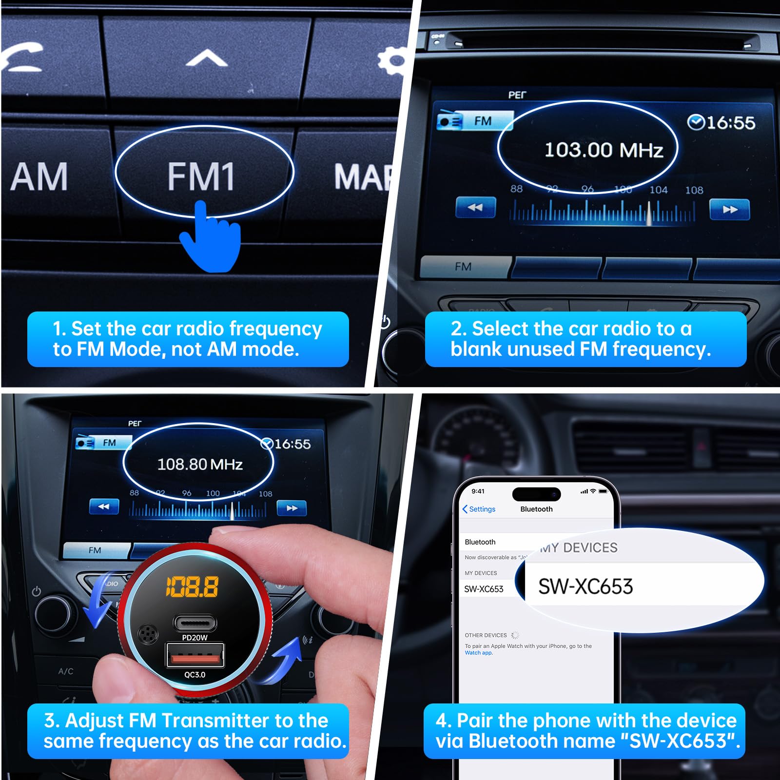 - [Advanced Bluetooth 5.4 FM Transmitter] Built-in latest Bluetooth 5.4 technology, Syncwire bluetooth car adapter provides a more stable connection for streaming music over FM frequency and making hands-free calls,, allowing for faster pairing with compatible devices, supporting smart voice navigation from your phone, streaming the audio from navigation app/Siri/Google Assistant to your car.