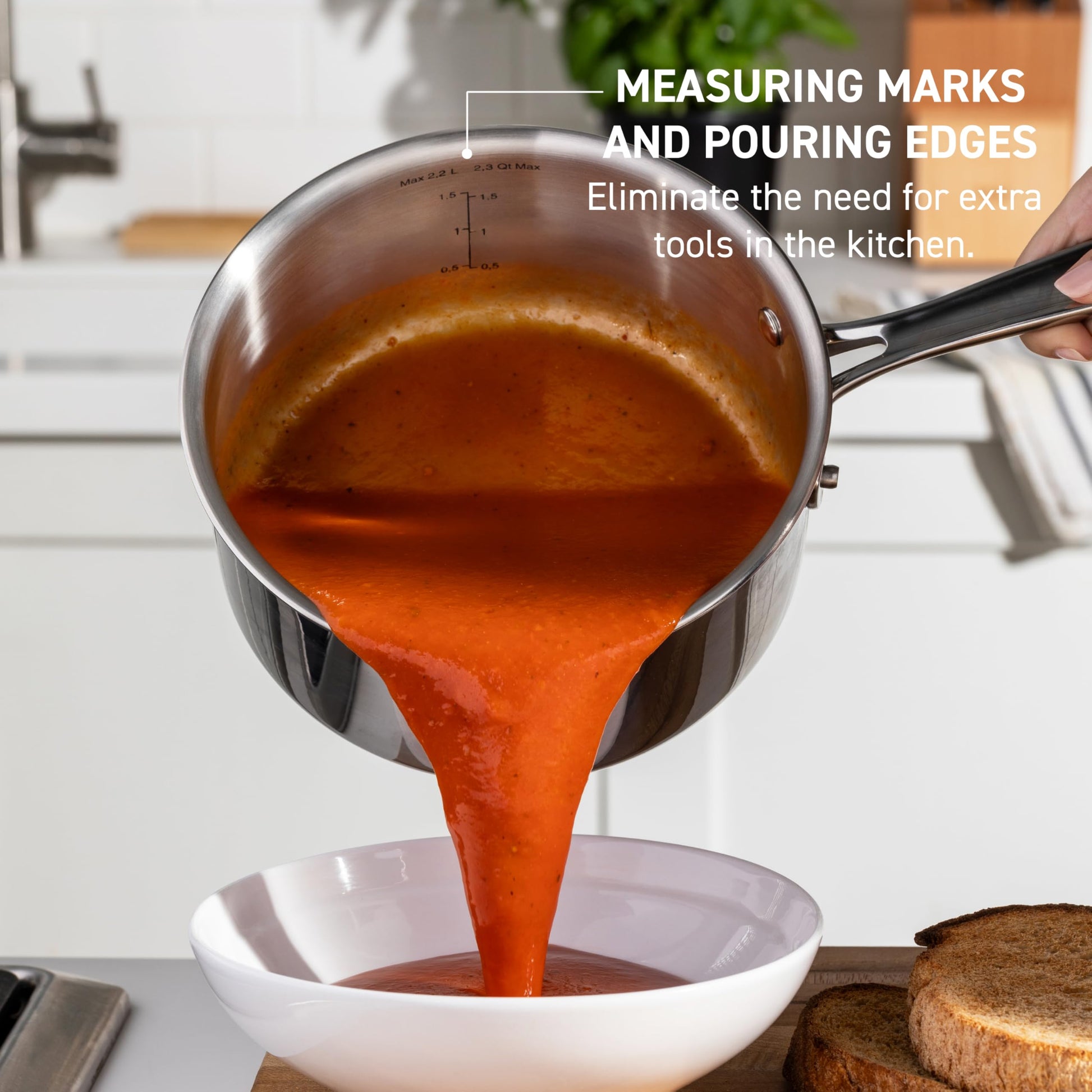 - ๐๐ฎ๐ข๐ฅ๐ญ ๐ญ๐จ ๐๐๐ฌ๐ญ: The heavy-duty tri-ply stainless steel construction ensures durability for years to come. Certified by NSF, this cookware meets the highest professional standards for quality and durability.