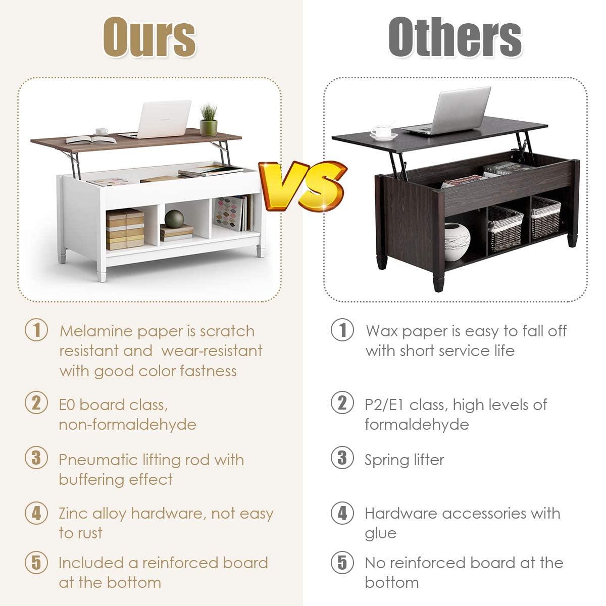 - Adjustable Height: Coffee table´s innovative design with hidden compartment and lift tabletop can be adjusted vertically from 19’’ to 24.5' to meet your different demands of desired height. Just lifting it effortlessly, there is extra storage room provided. And the stability will also be guaranteed while adjusting.
