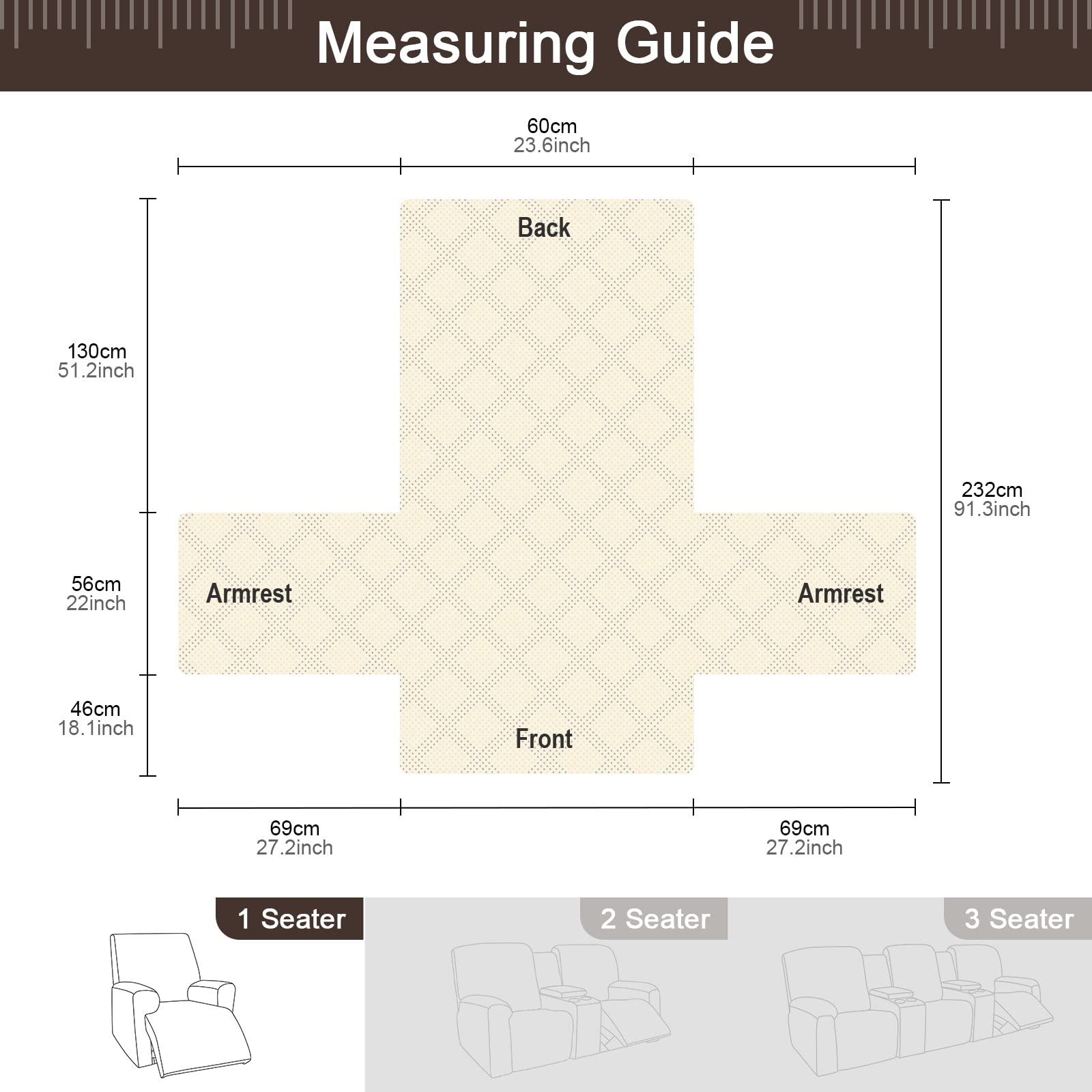 - 【DIMENSIONS GUIDE】Small pet recliner cover fit a chair with a seat width of 23.6 in, see measurement guide in photos. NOTE: Please confirm the size before purchasing. (Due to some lighting reasons, the color of each display will be different, so please refer to the actual color)