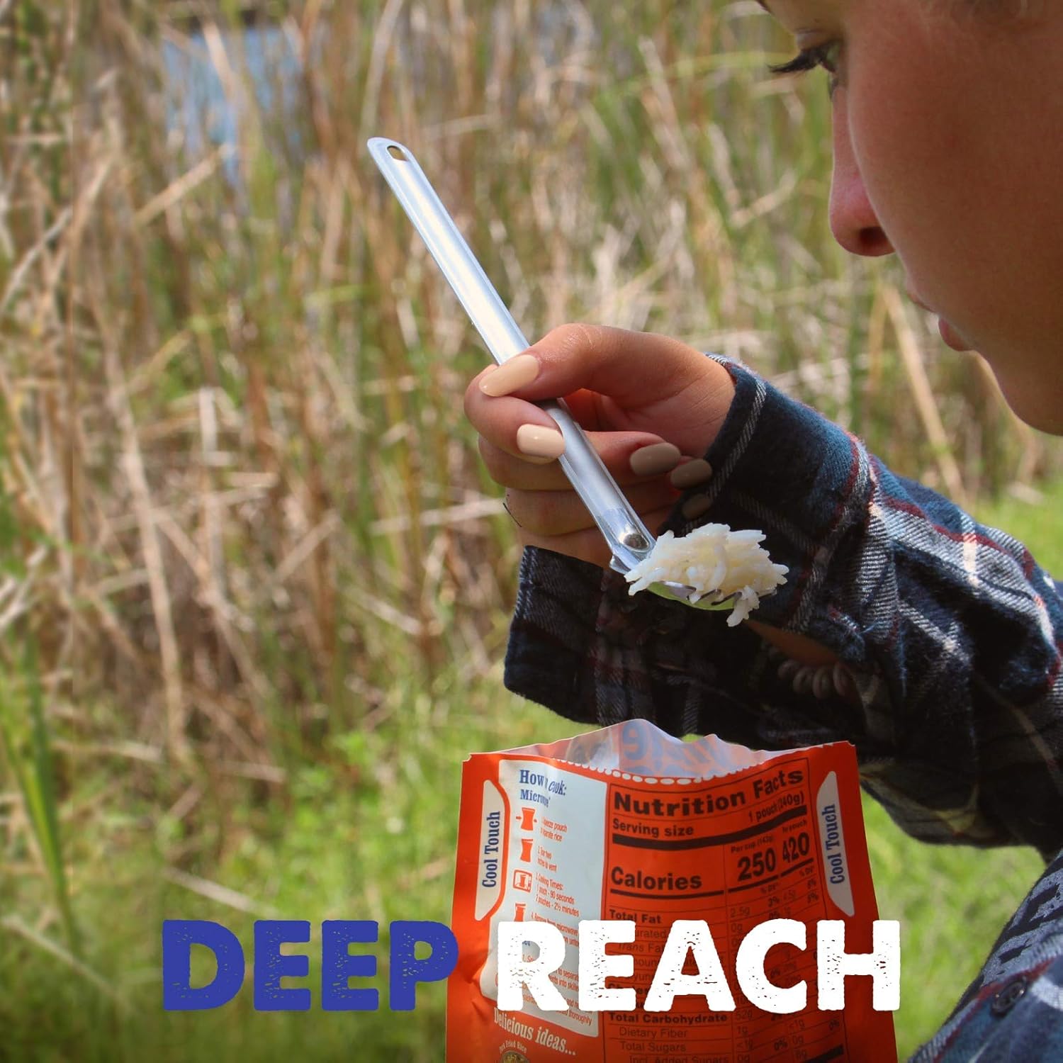Tapirus - Long Spork and Long Spoon Set - 9.4-inch Long Deep Reach Stainless Steel Eating Utensils for MRE Bag - Keep Hands Clean and Away from Heat - Carry Bag Ideal for Hiking, Camping, Backpacking