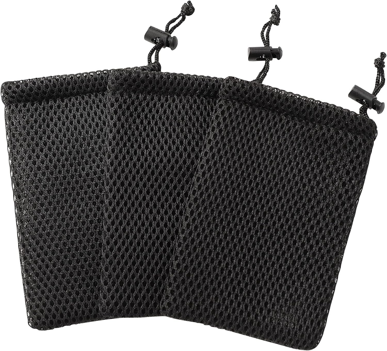 tatoko 5pcs Nylon Mesh Drawstring Bag, 5 x 3.5 Inch Small Storage Pouch String Bags for Mini Stuff MP3 Charger Earphone Key, Travel Kit Organizer for Lipstick Cosmetic Jewelry, Black