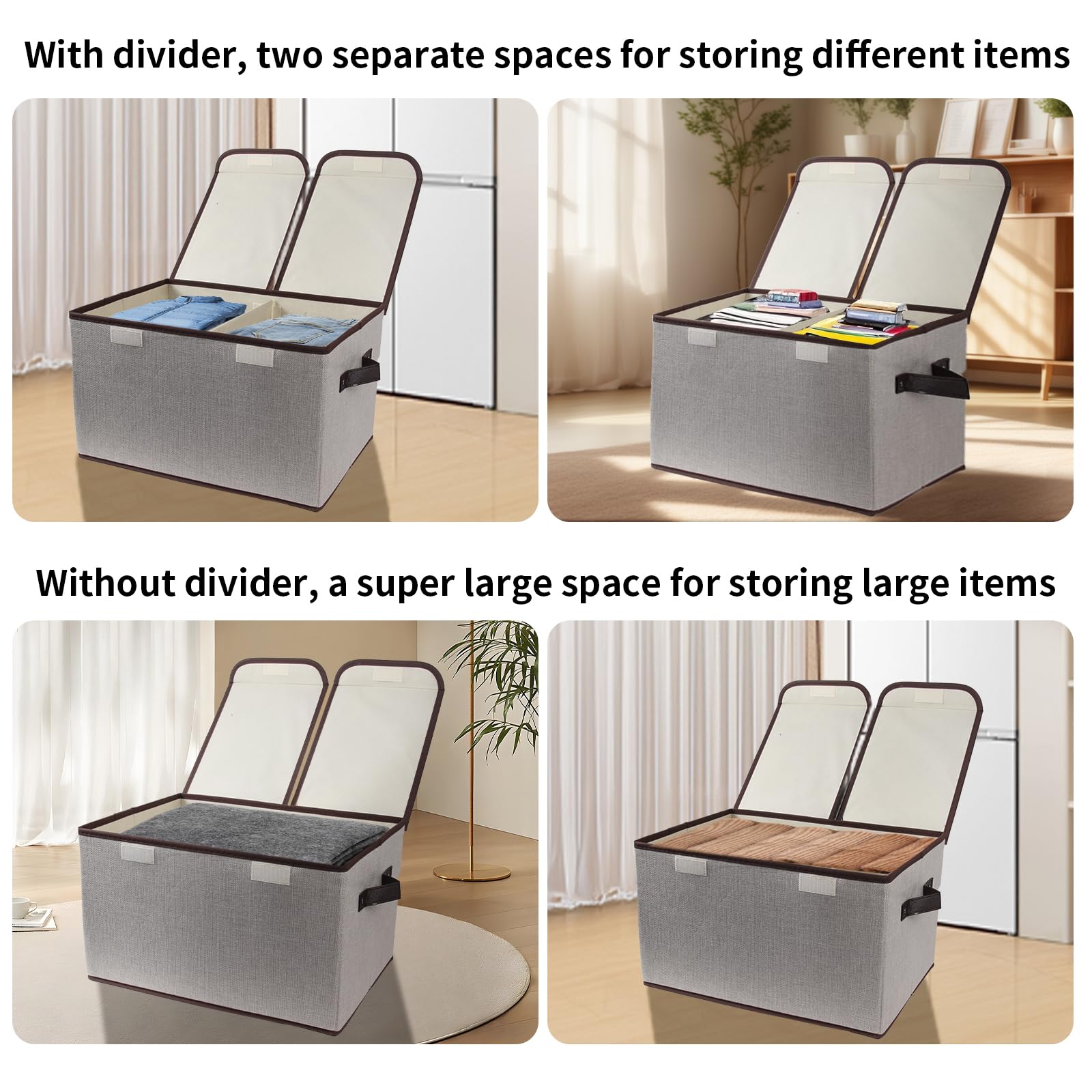 Tcbelosion Foldable Fabric Storage Box with Double-Lid & Dividers, Large Organizer for Home, Closet, Office(Grey)