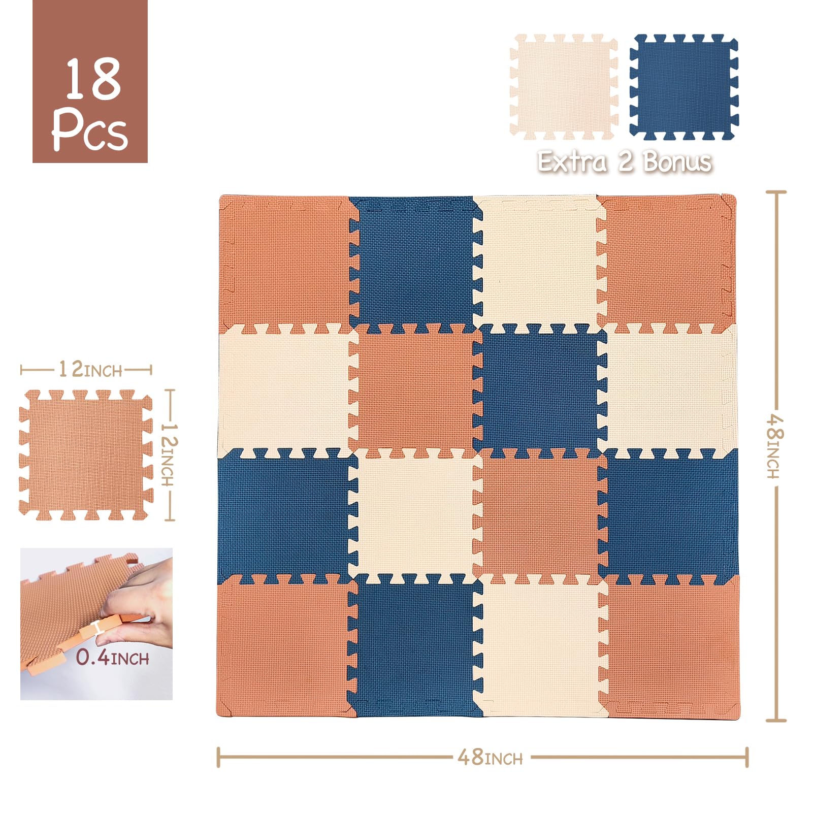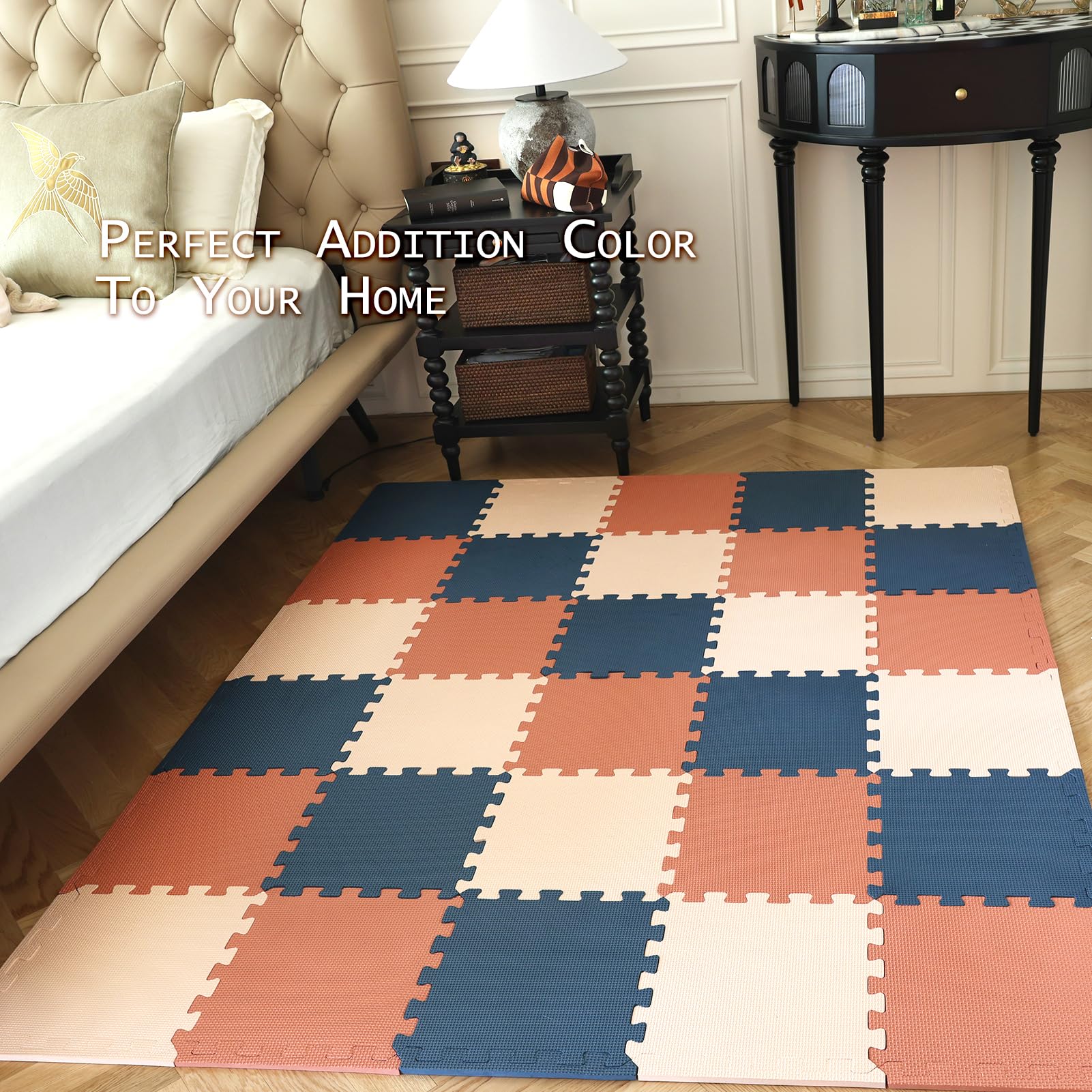TCBunny Kids Soft EVA Foam Jigsaw Puzzle Play Mat, 18 Interlocking Tiles and Edges Baby Play Mat, for Kids Gym, Nursery, Playroom, Pet Mat, Total Floor Coverage 16 Sq Ft, Blue/Pink/Cream