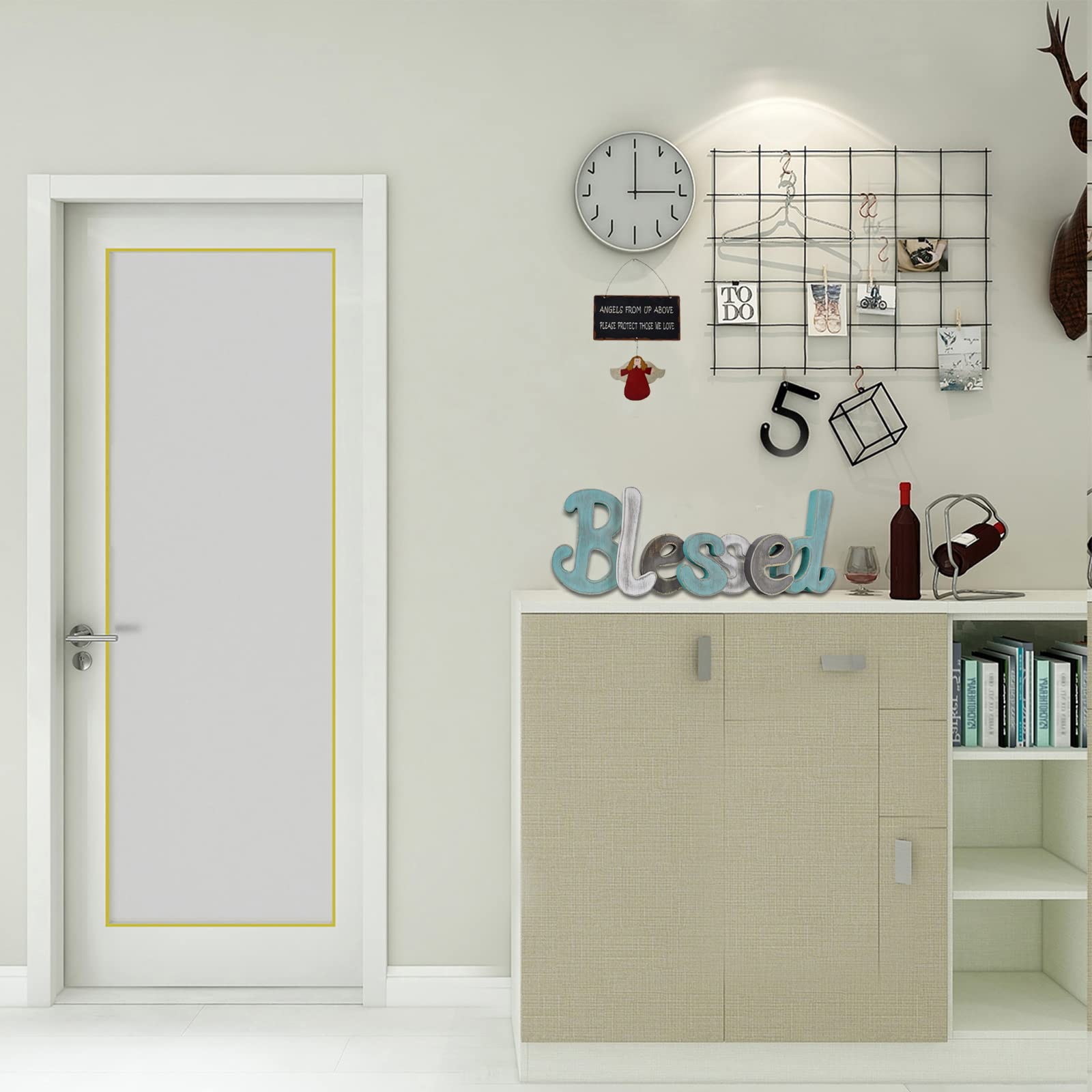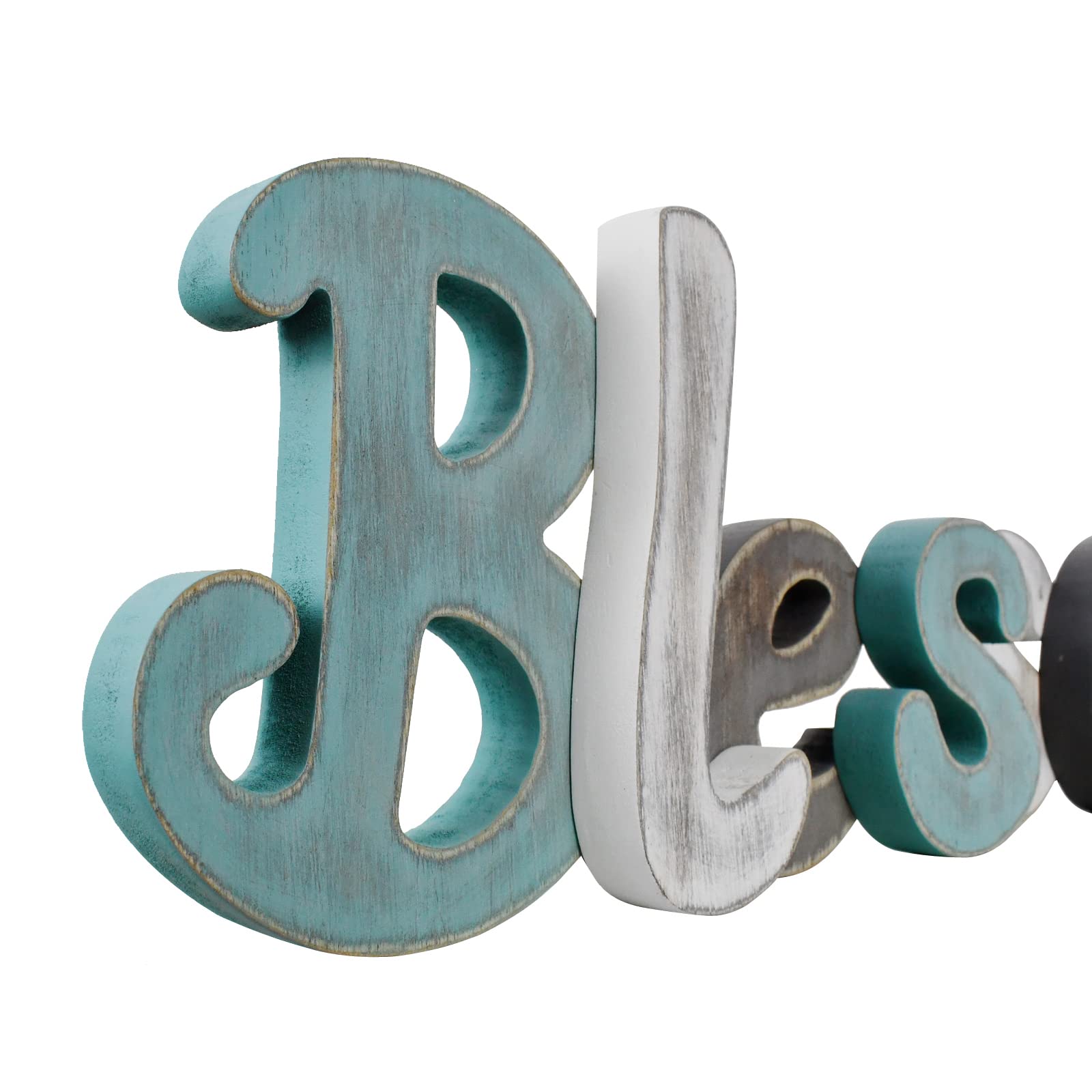 - Wooden Blessed sign - Decorative blessed sign is made of MDF wooden letters that spell out the word BLESSED. Distressed finish and multi colors design adds a rustic touch to your house. Perfect piece to complement the modern, farmhouse or country style decor as a decorated indoor accent.