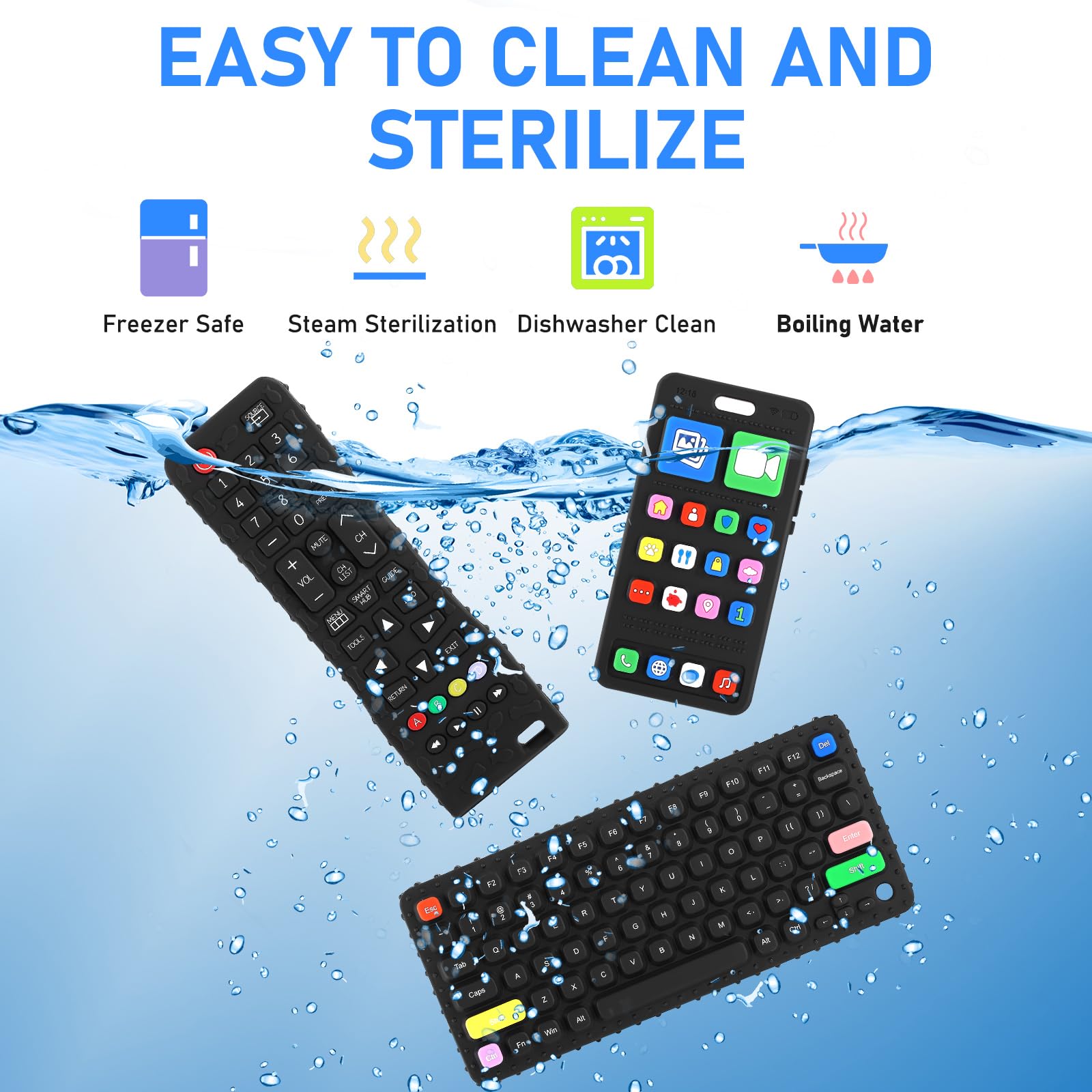 - Safe and Certified - 100% Food grade silicone, non-toxic and BPA free. Our teething toys are rigorously tested to pass certification standards. They are resistant to both high and low temperatures, can be cleaned by freezer, steam, boiling water, dishwasher