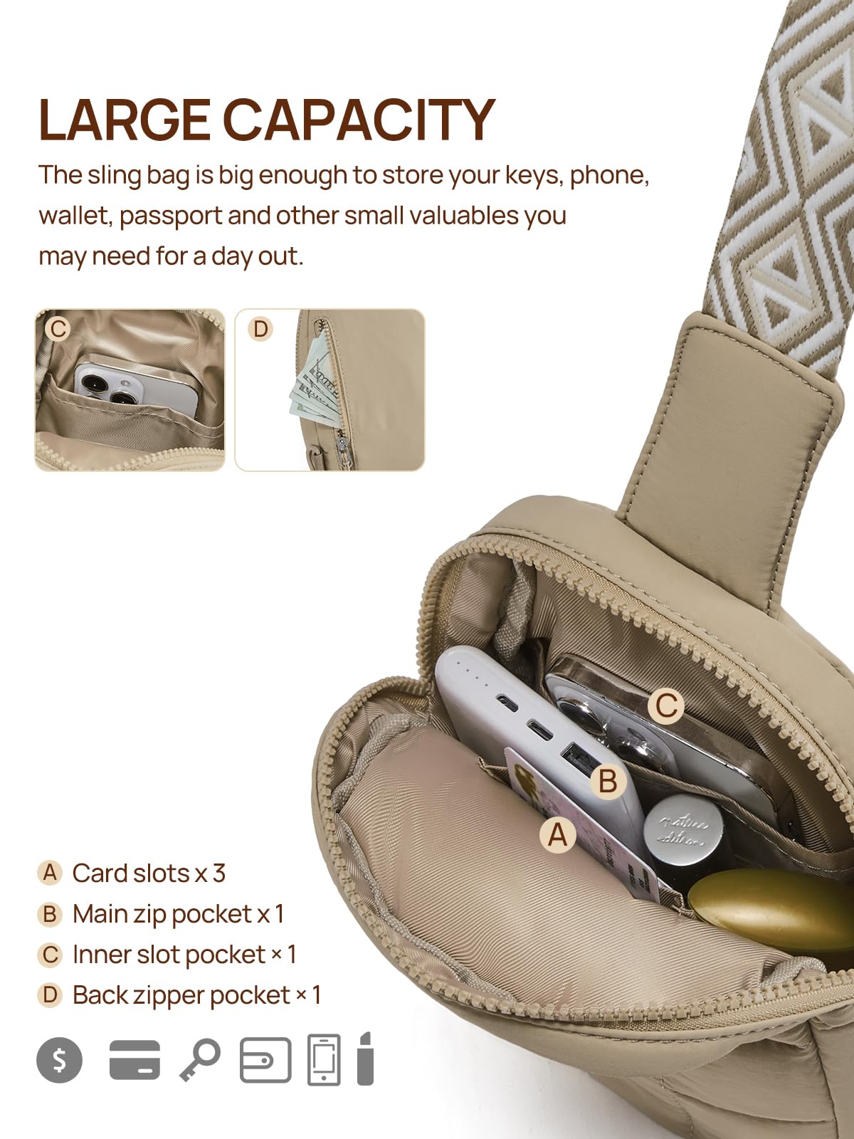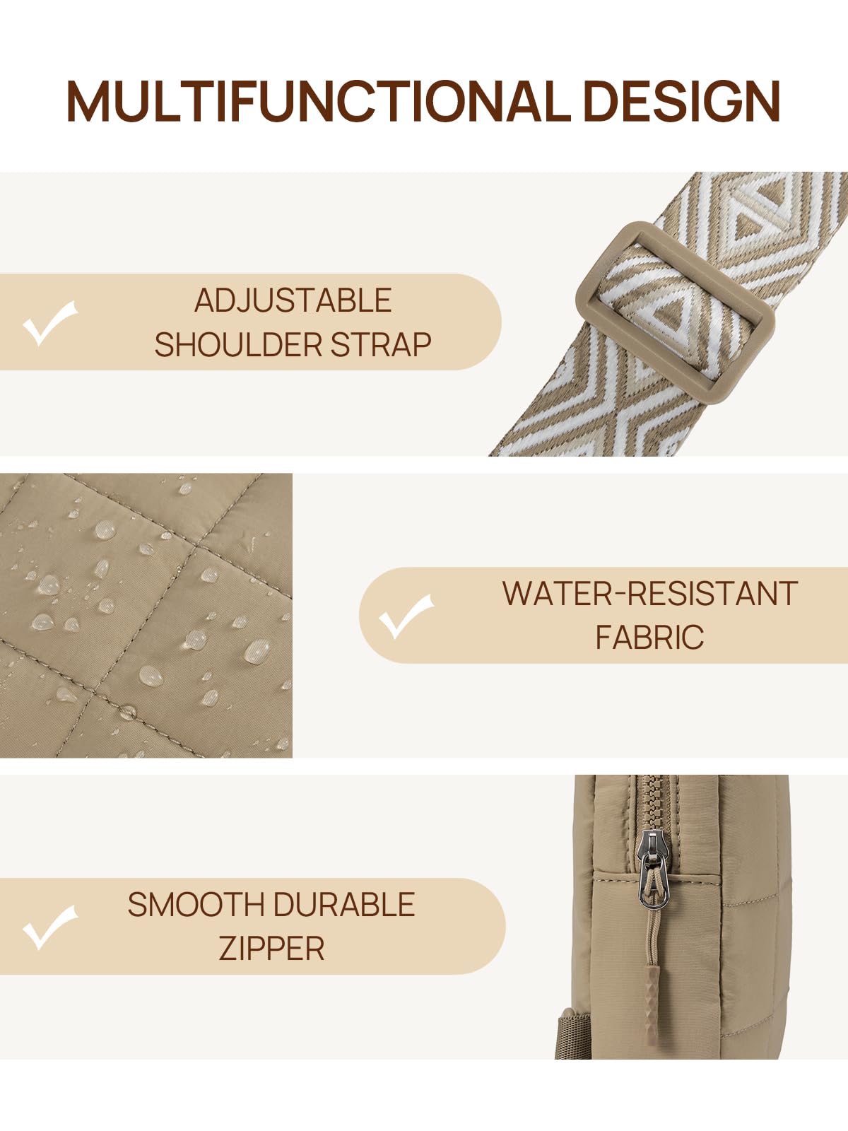 Telena Crossbody Bags for Women Quilted Puffer Cross Body Sling Bag Khaki
