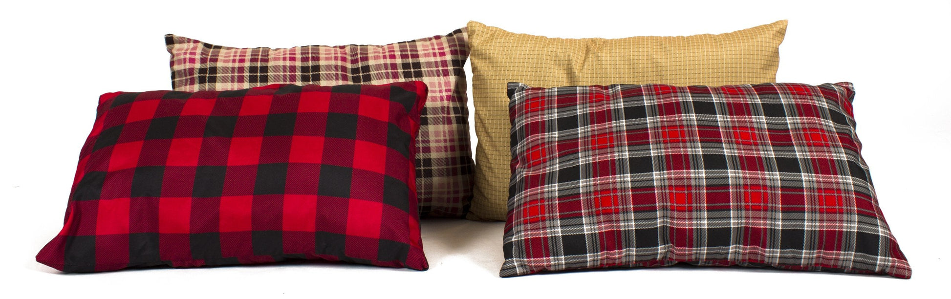 Details: Our camp pillow is comfy enough to make anywhere feel like home. The soft poly cover in classic buffalo plaid (regular) or plush fleece on one side and Teton print on the other (Grand) is stuffed with a dependable fiber fill that doesn’t lose its shape, supporting you all night long. Cleaning is a cinch with the included machine-washable pillowcase. Choose between the regular size (18' x 24'), which is perfect for travelling, or the Grand size (12' x 18'), which is still smaller than a standard pillow to keep things easily packable, but big enough for maximum comfort in any situation. Storage is easy with the included drawstring bag and tight-packing capabilities, without sacrificing comfort.