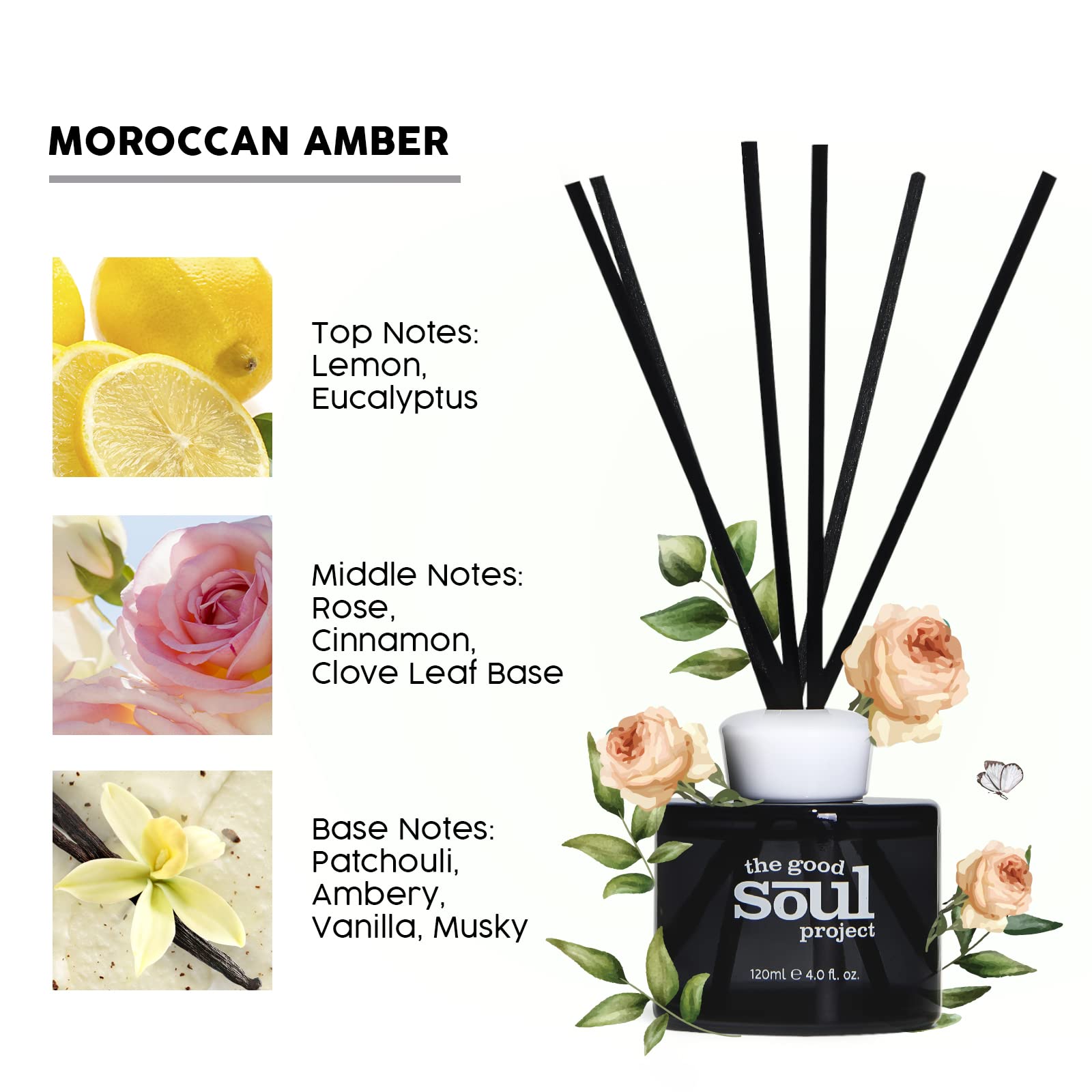 THE GOOD SOUL PROJECT Reed Diffuser Set, Morrocan Amber Scented Oil Diffuser for Bathroom, Bedroom, Home Fragance Air Freshener