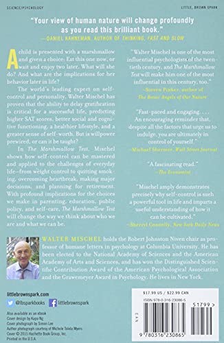 In The Marshmallow Test, Mischel explains how self-control can be mastered and applied to challenges in everyday life -- from weight control to quitting smoking, overcoming heartbreak, making major decisions, and planning for retirement. With profound implications for the choices we make in parenting, education, public policy and self-care, The Marshmallow Test will change the way you think about who we are and what we can be.