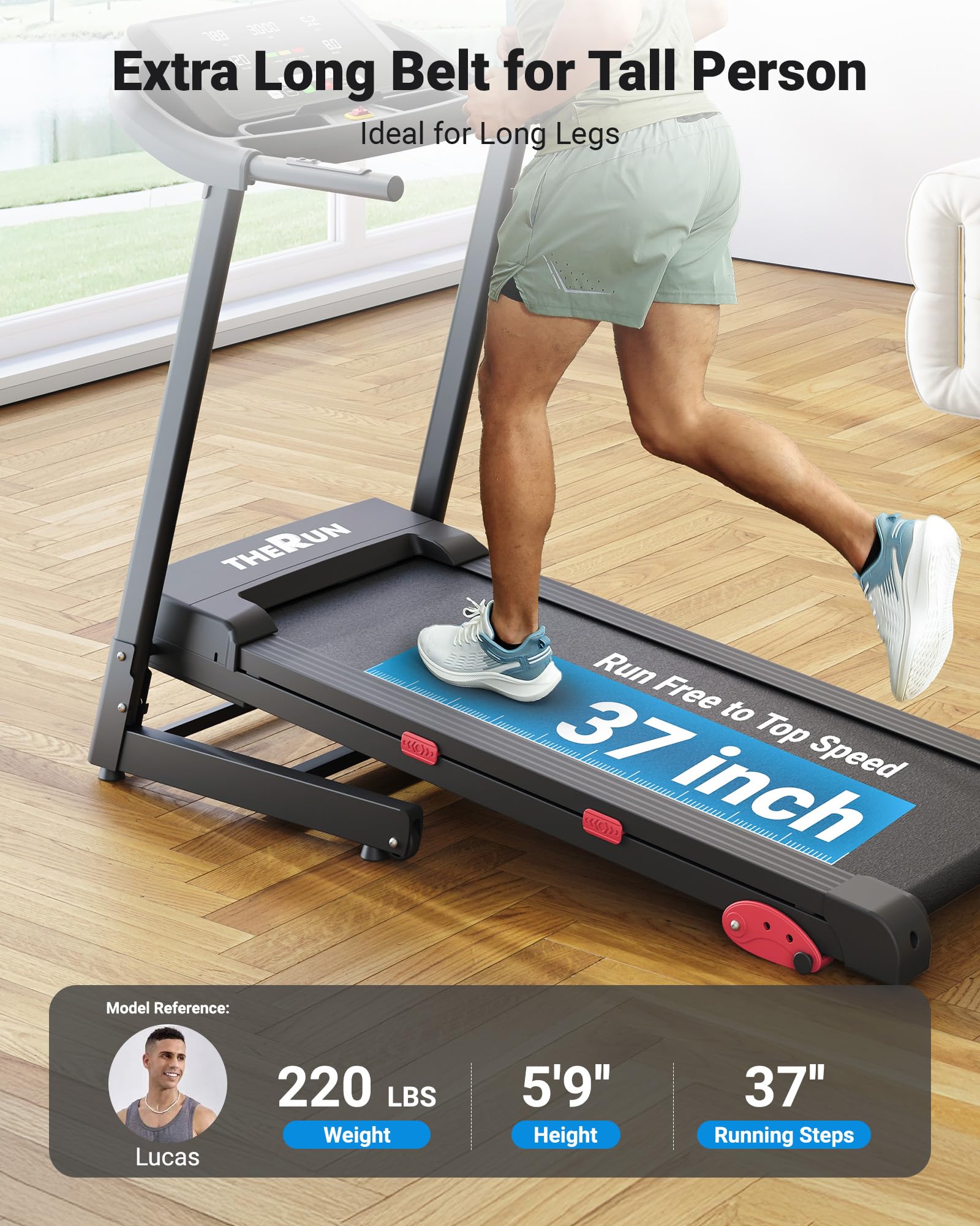 - [9.0 MPH POWERFUL MOTOR] THERUN treadmill for home features a quiet 3.0 HP motor that reaches speeds of up to 0.5-9.0 MPH. Discovering the versatility of speeds and maintaining a low noise level of just 55 dB, ensuring a quiet workout environment. This incline treadmill 300 lbs capacity supports a quiet workout environment for you, your family and even your pets