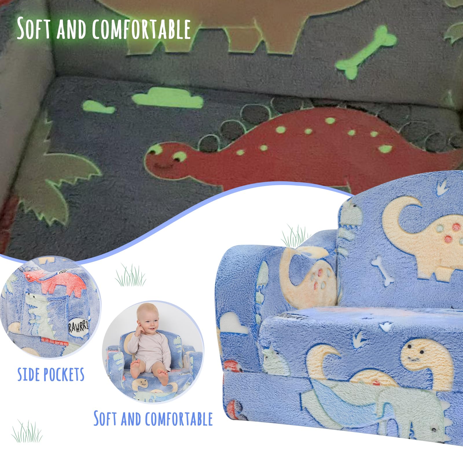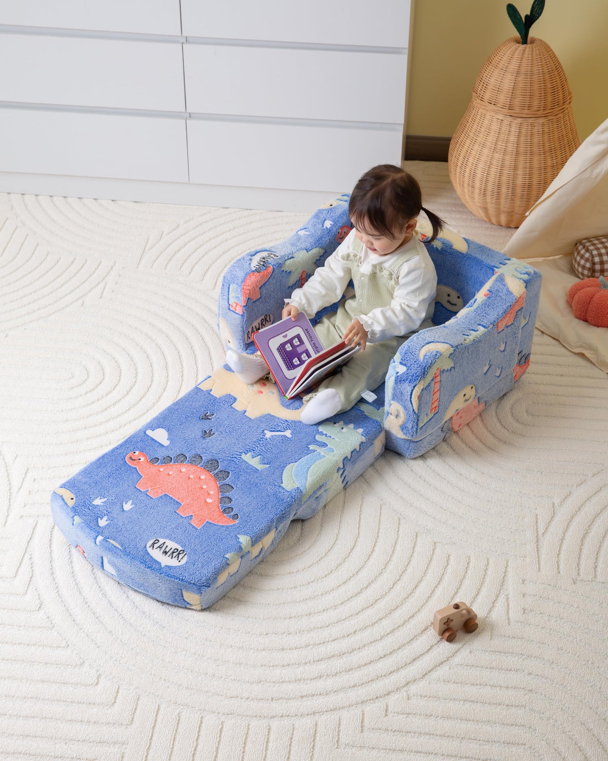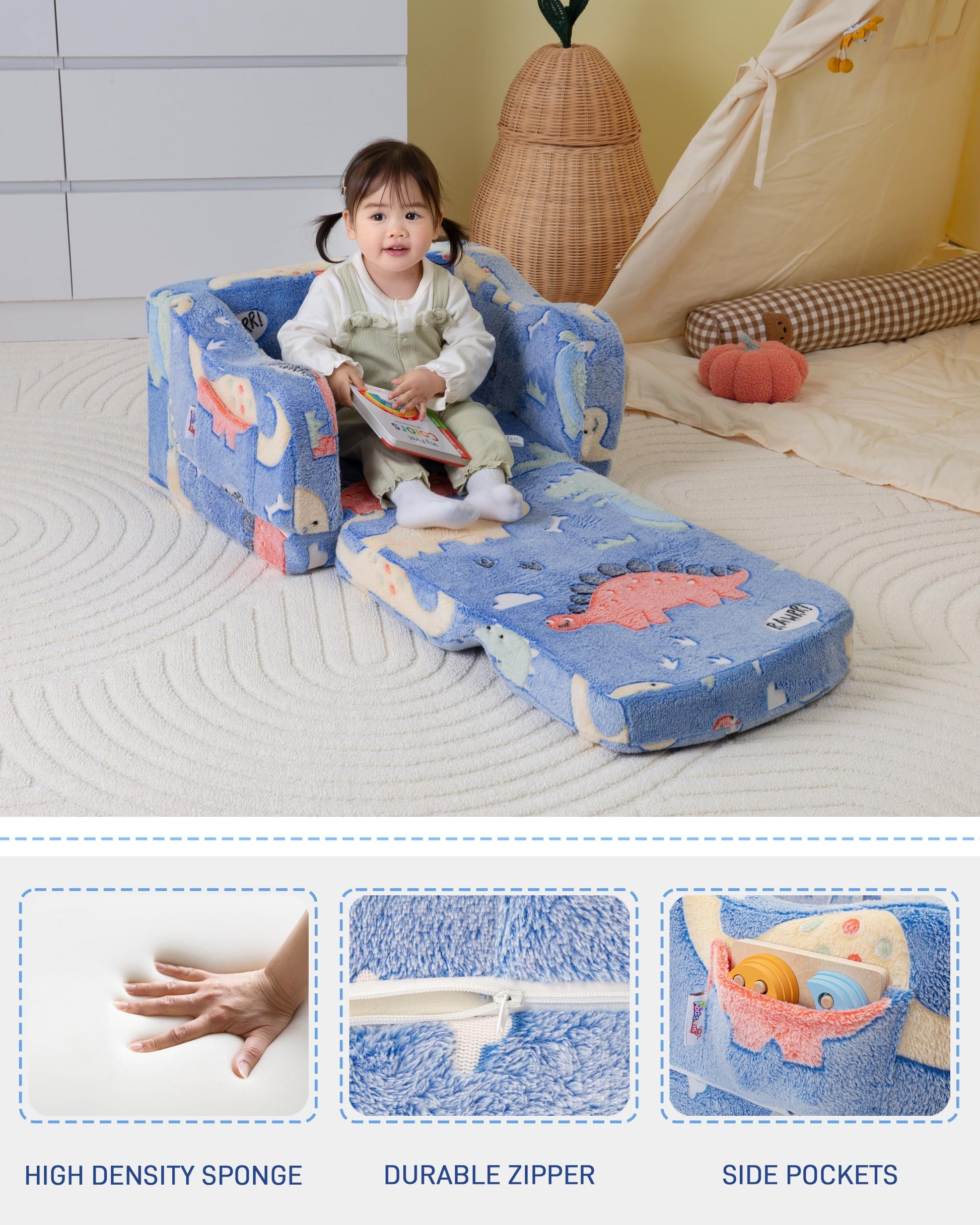 Thick Comfy Toddler Chair and Couch for Kids,2-in-1 Soft Plush Fold Out Sofa for Children,Convertible Couch to Lounger for Toddler