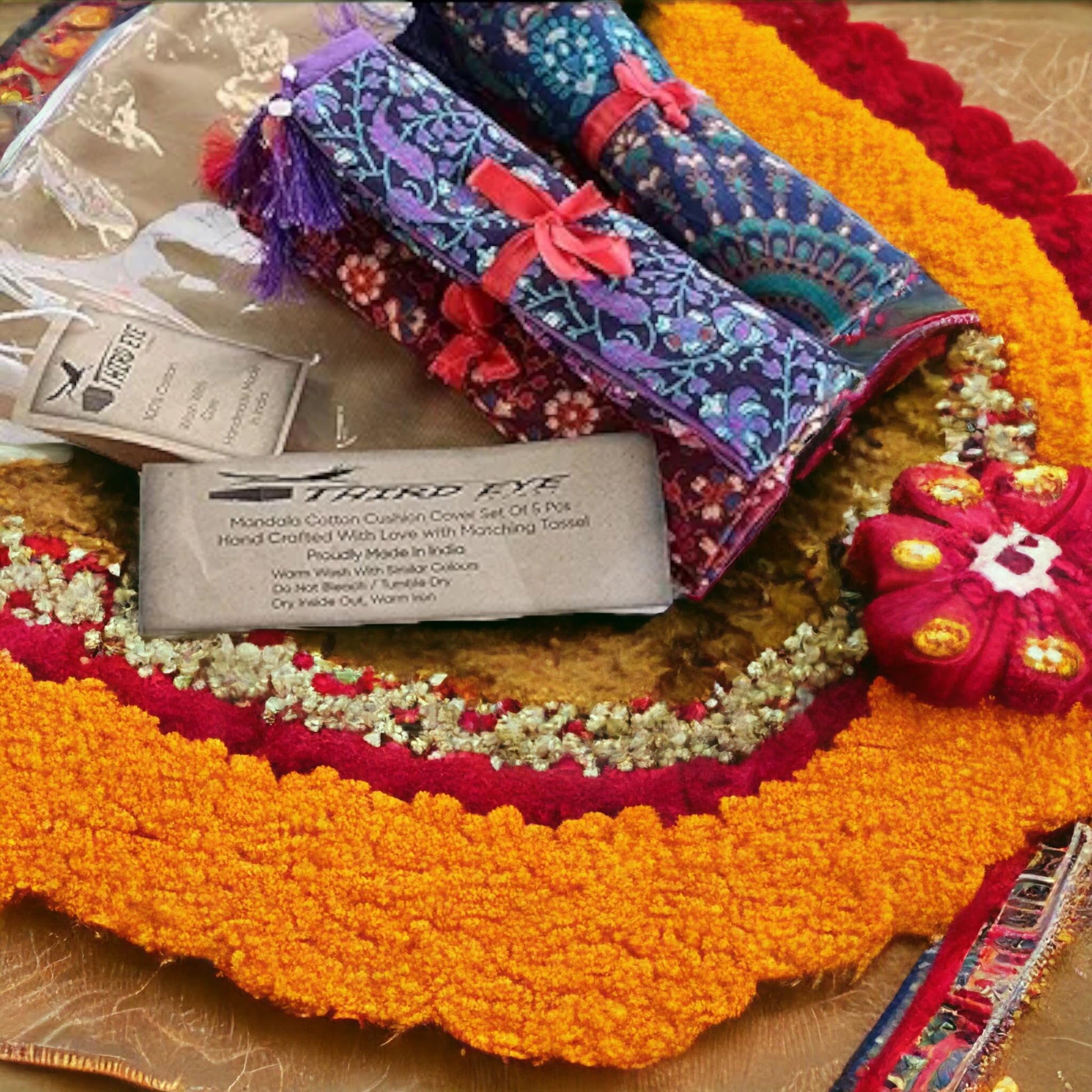 Third Eye Export 100% Cotton Mandala Pillow Covers Set of 5 Pcs Throw Pillows for Couch Decorative Pillow Covers 16x16 in. Boho Throw Pillows Farmhouse Pillow Covers for Arabian Night Party