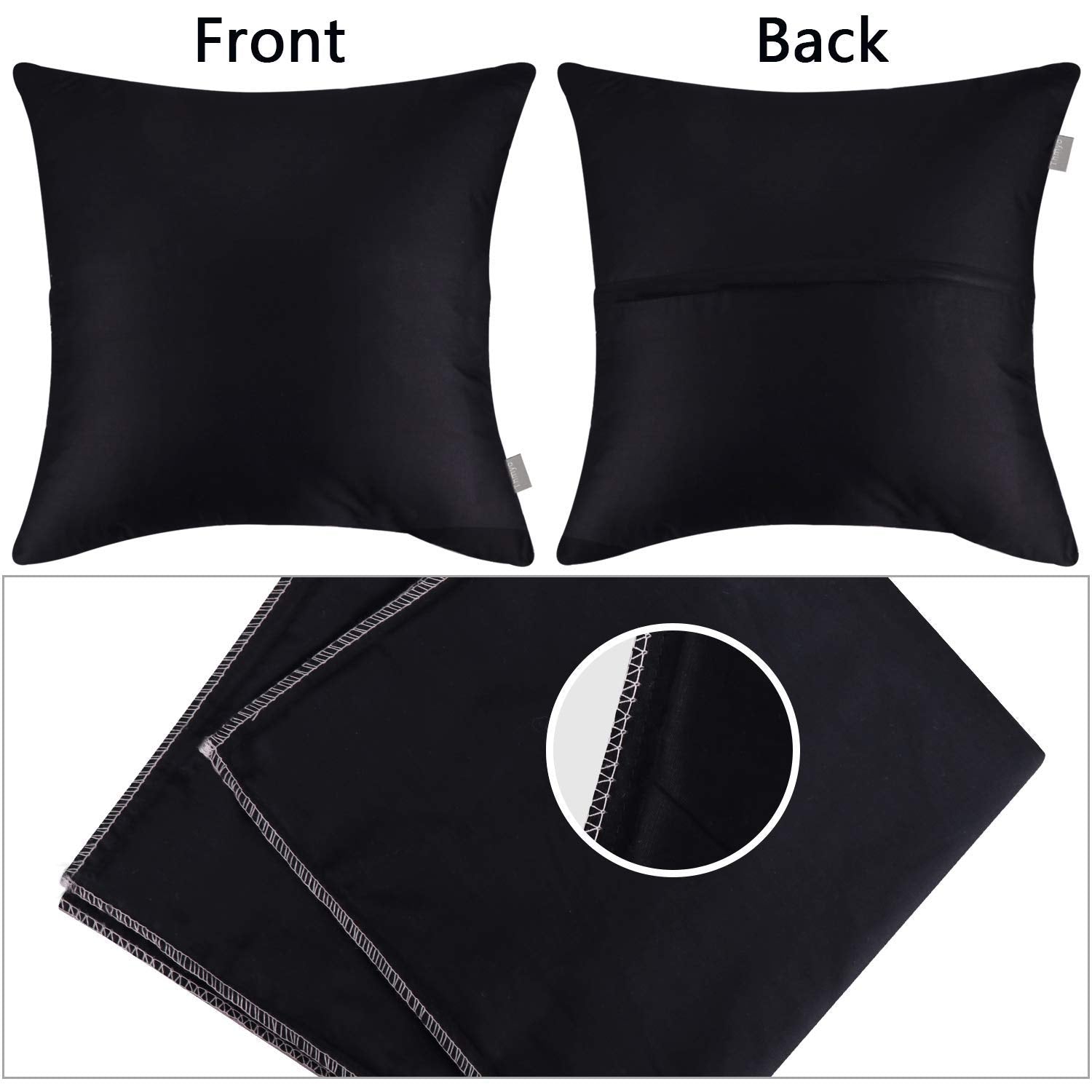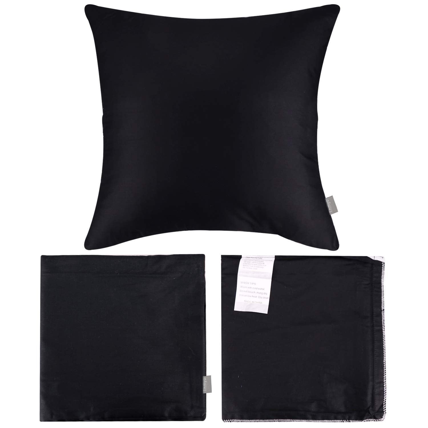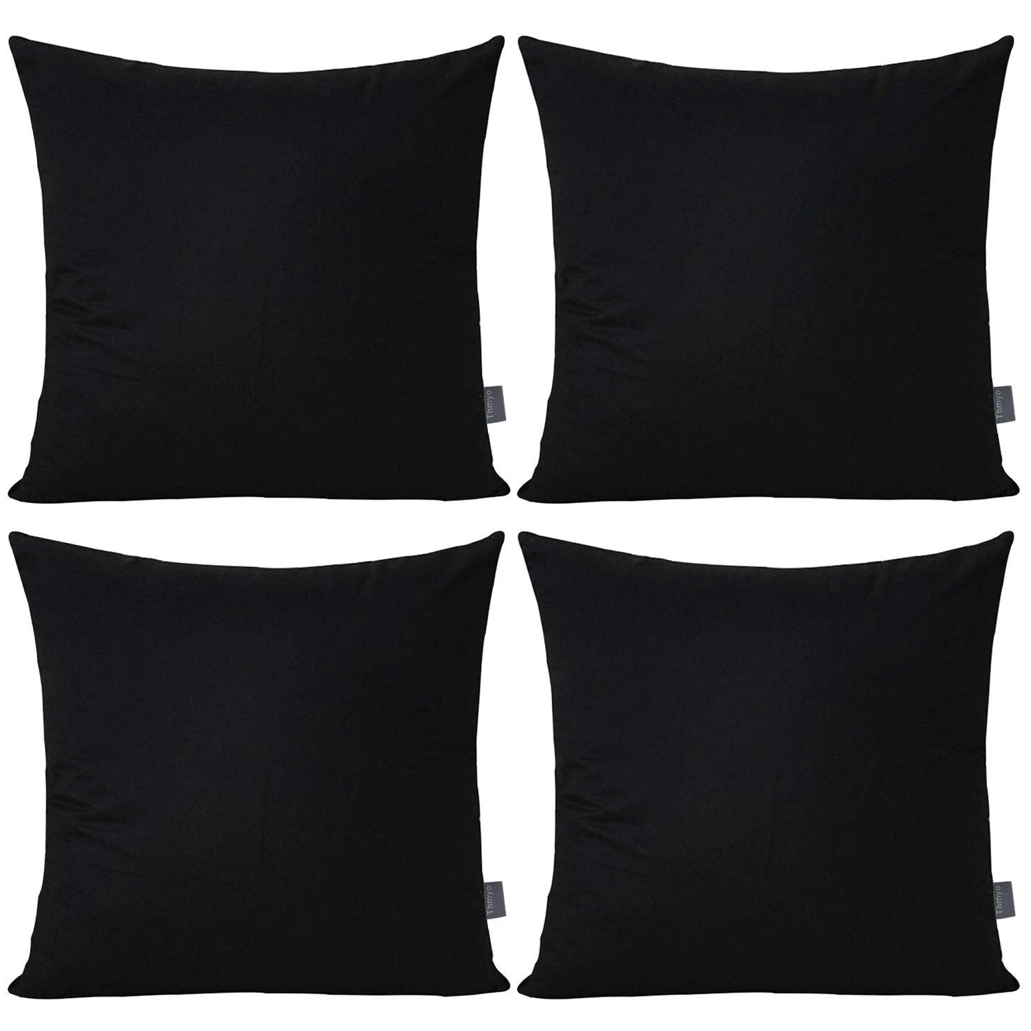 Thmyo 4-Pack 100% Cotton Comfortable Solid Decorative Throw Pillow Case Square Cushion Cover Pillowcase Sublimation Blank Pillow Covers Halloween DIY Throw Pillowcase for Sofa(18x18inch/45x45cm,Black)