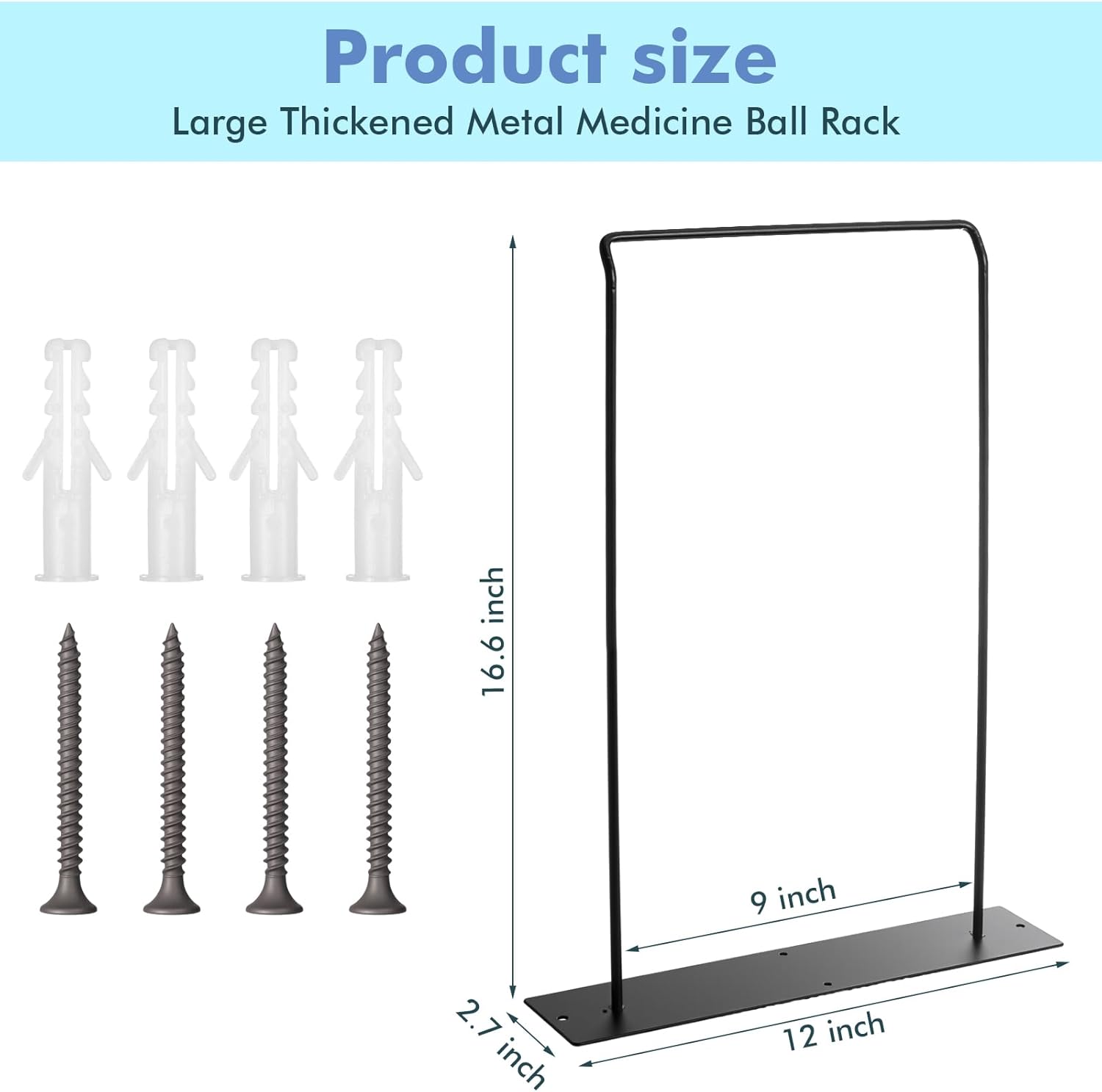 Threan 2 Pack Metal Medicine Ball Rack Wall Mounted 16.6'' Large Yoga Storage Ball Rack Thickened Black Sport Exercise Equipment Holder for Gyms Studios Home Space