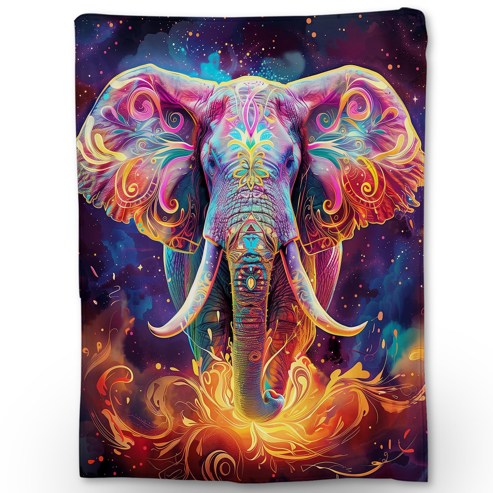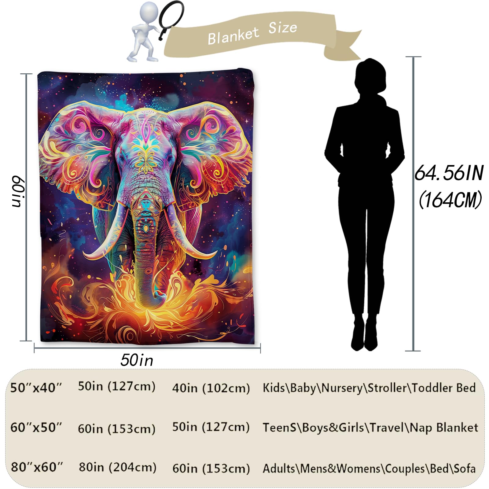 - [Captivating Elephant Design]Featuring a stunning and vibrant design, our blanket showcases a majestic elephant adorned with intricate, swirling patterns set against a mesmerizing cosmic backdrop. The rich, bold colors and detailed artwork create a striking visual appeal, transforming the blanket into a piece of art.
