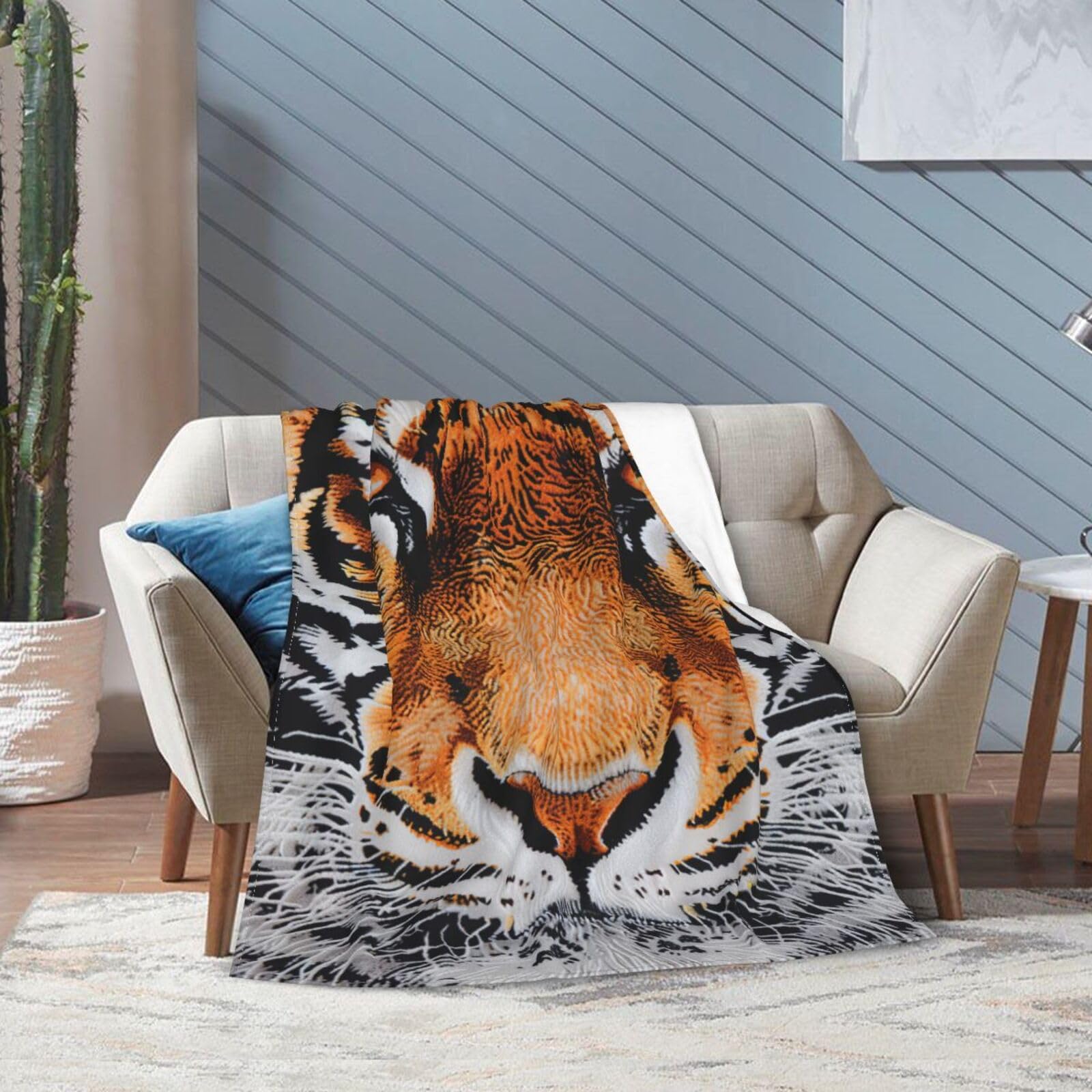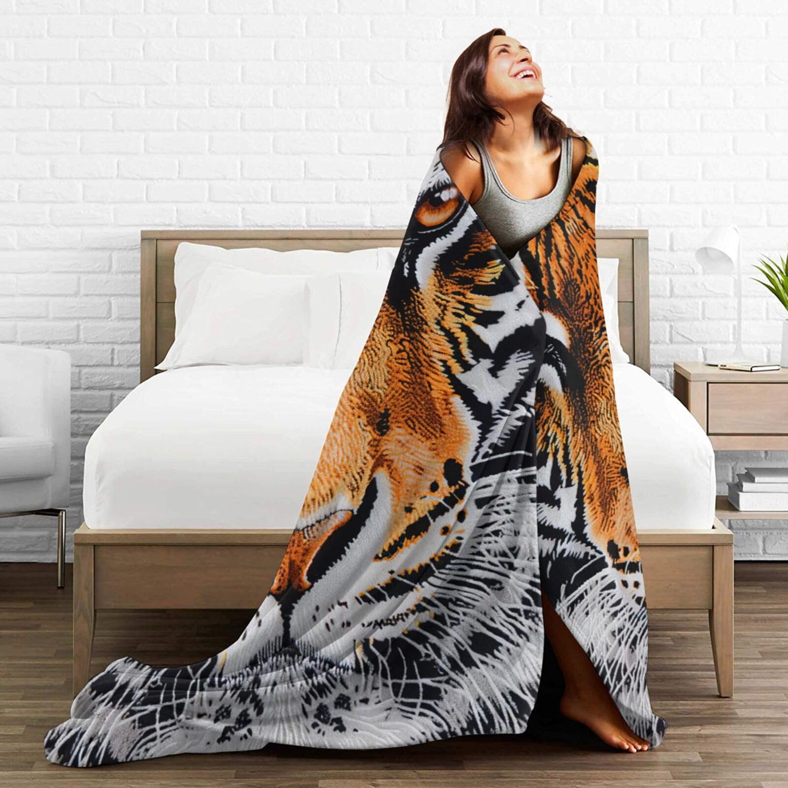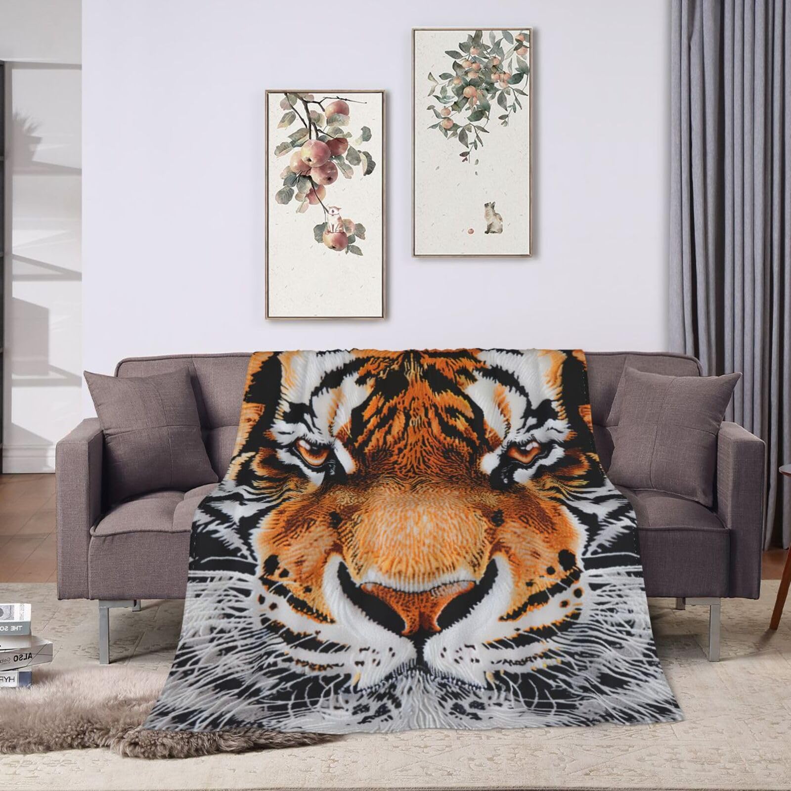 Tiger Print Throw Blanket - Cozy Flannel Soft Warm Plush Lightweight Bedding - Wild Animal Gifts for Girls & Women - 50"X40"