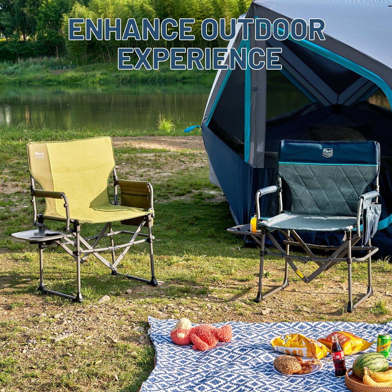 TIMBER RIDGE Aluminum Camping Directors Chair with Side Table Pocket, Portable Folding Heavy Duty Lawn Chair for Fishing Trip Picnic Concert Outdoor 400lbs, Navy 2 Pack