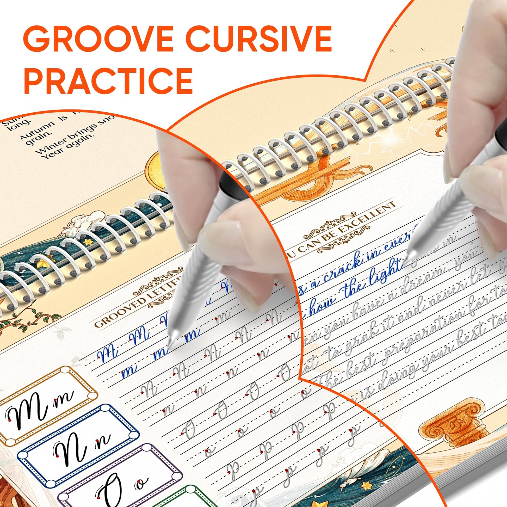 - Correct Writing Posture: The grooved cursive handwriting workbook guides every pen stroke. The three-dimensional groove design and auxiliary pen holder help kids master proper writing posture for penmanship practice