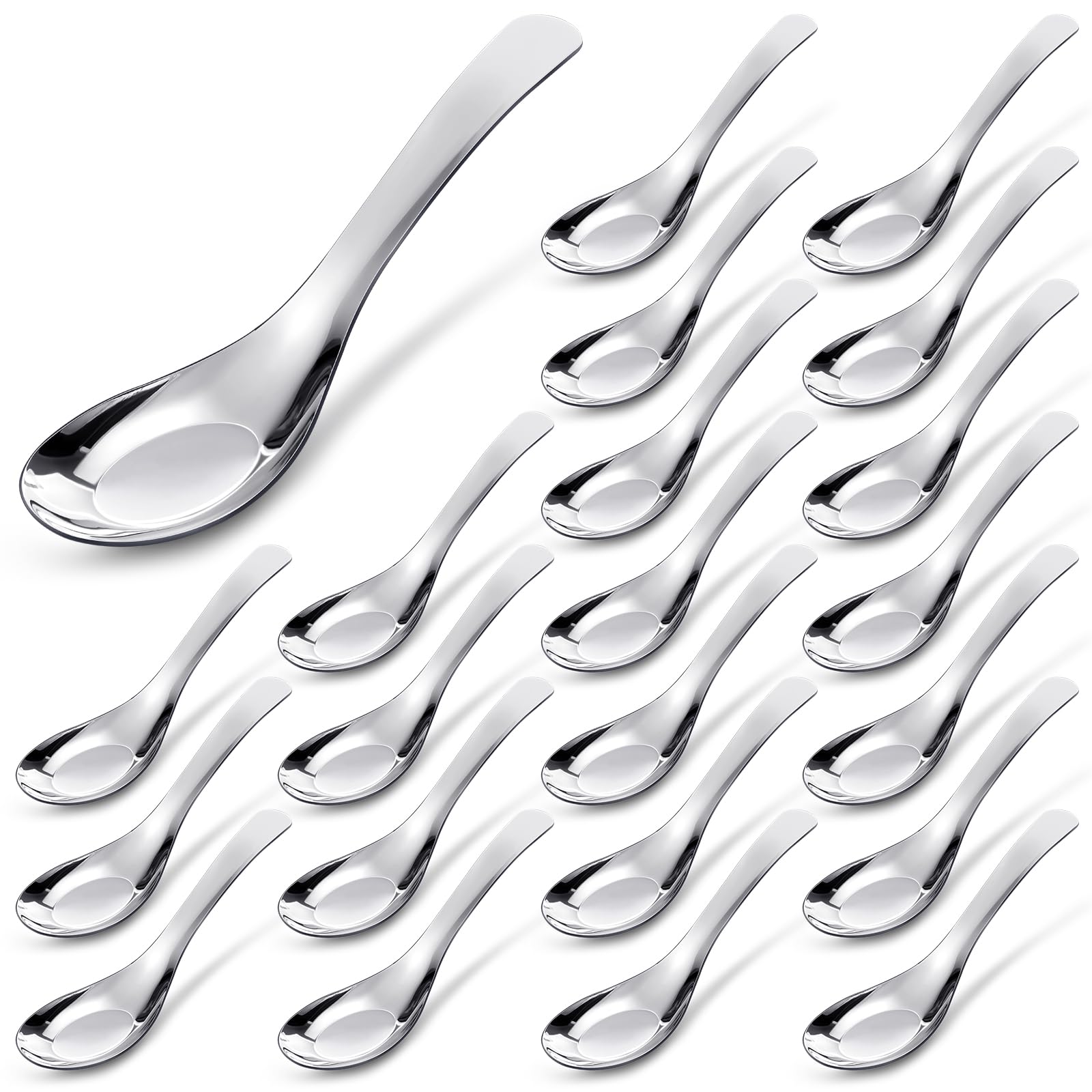 Tioncy 24 Pcs Stainless Steel Soup Spoons Mirror Polished Asian Soup Spoons for Bouillon Dessert Cereal Ramen Pho Wonton Dumpling Noodles