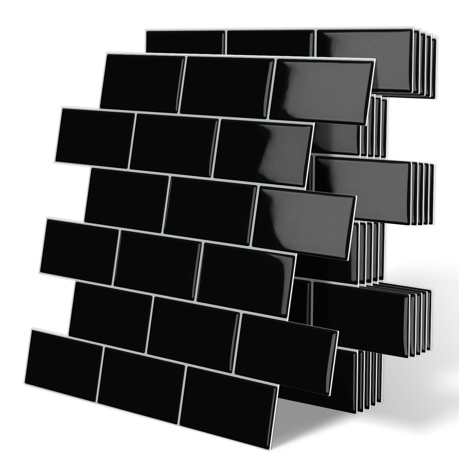 Tiwoos Thick Black Peel and Stick Subway Tile Backsplash Self Adhesive for Kitchen Bathroom Wall (10-Sheet, 12"×12")