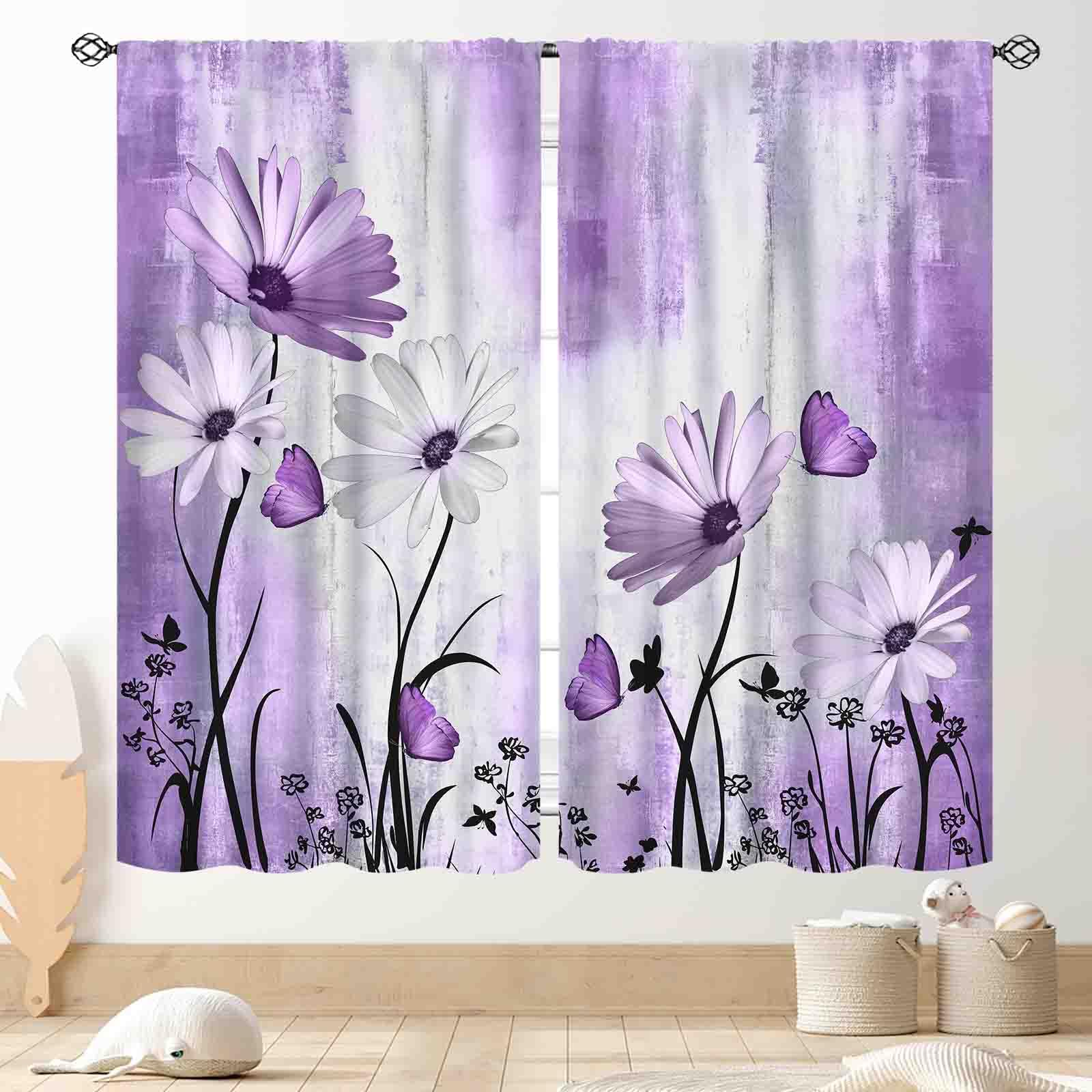 TKUYO Purple White Daisy Curtains, Farmhouse Modern Flower Retro Floral Spring Butterfly Rural Country Style Seasonal Window Drapery for Living Room Bedroom Kitchen Bathroom 2 Panels, 42"x54" Inch