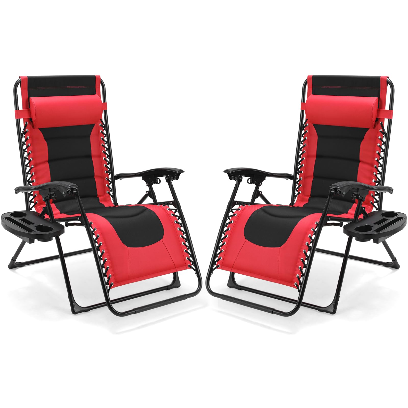 TLSUNNY Oversized Padded Zero Gravity Chair Set of 2, Folding Outdoor Patio Recliner, 24.2" Wide Seat Lounger W/Detachable Pillow & Holder Tray, Patio Furniture for Garden, 350LBS (Black/Burgundy)