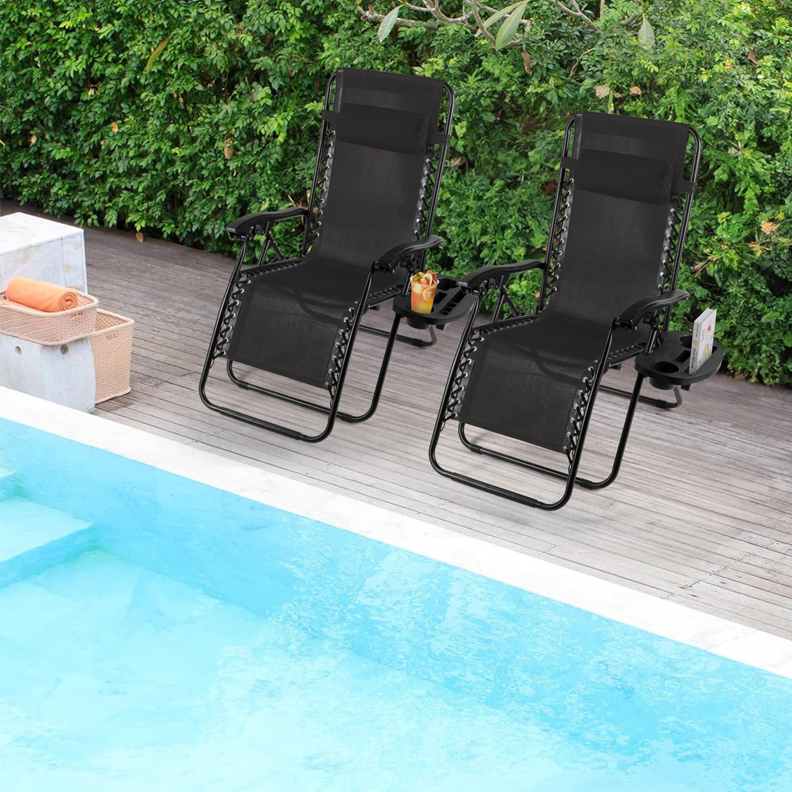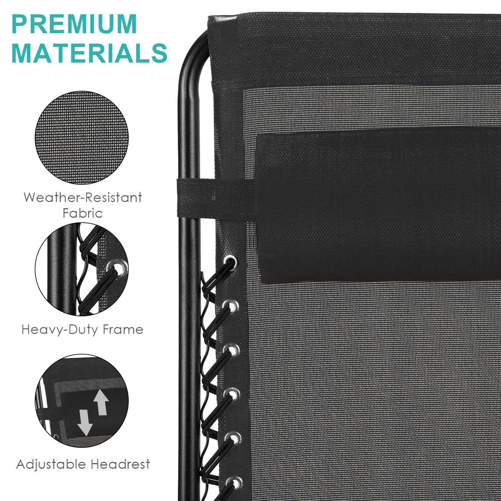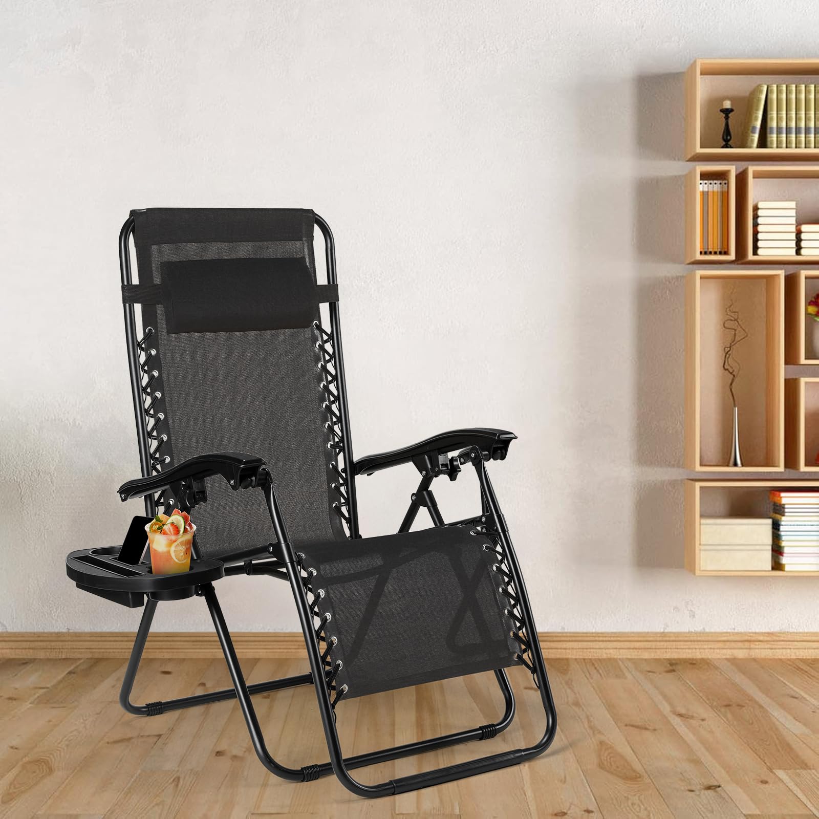TLSUNNY Zero Gravity Chair Set of 2, Outdoor Folding Lounge W/Detachable Headrest & Holder Tray, Adjustable Textilene Lawn Reclining, No Assembly Required, for Patio, Garden, 330LBS (1, Black)