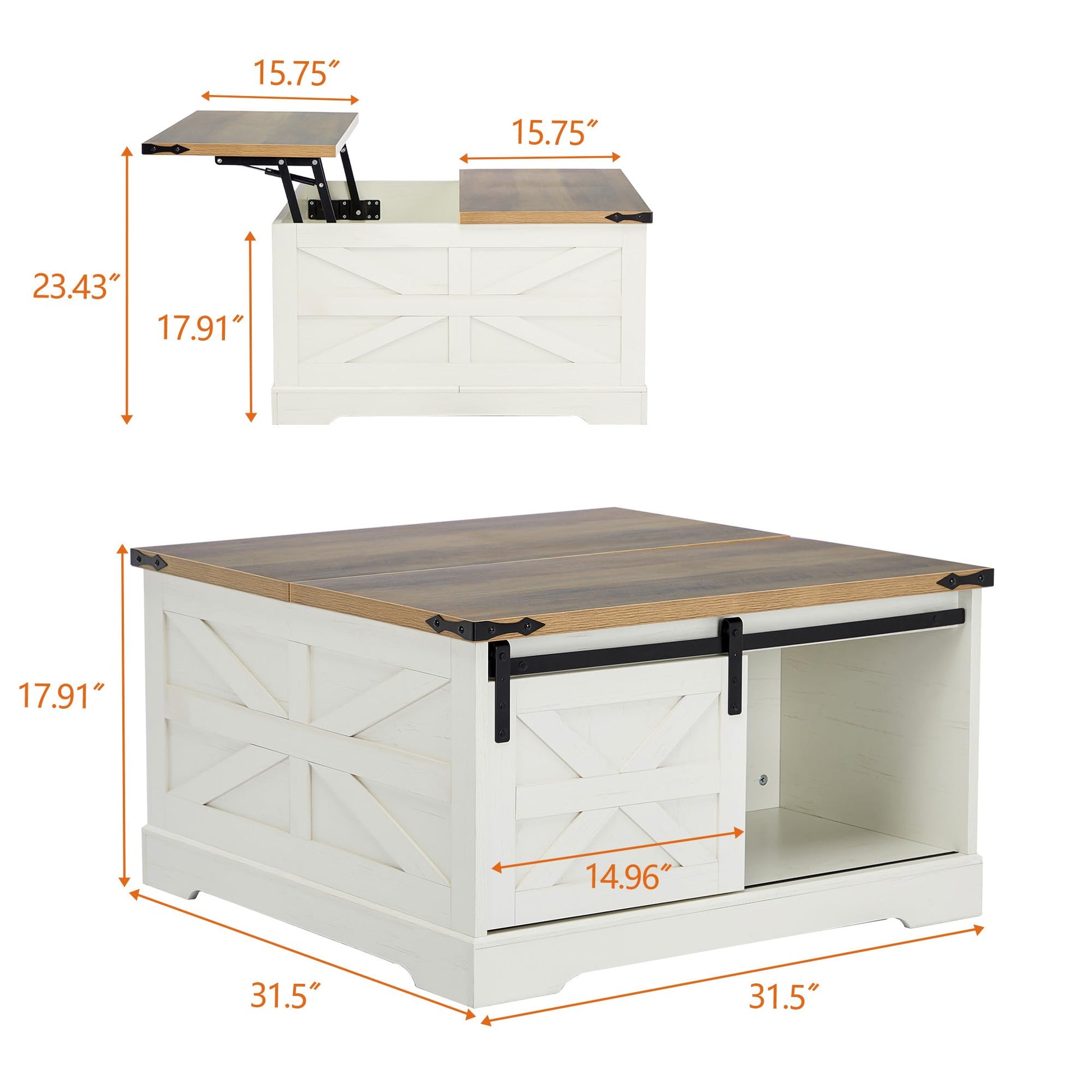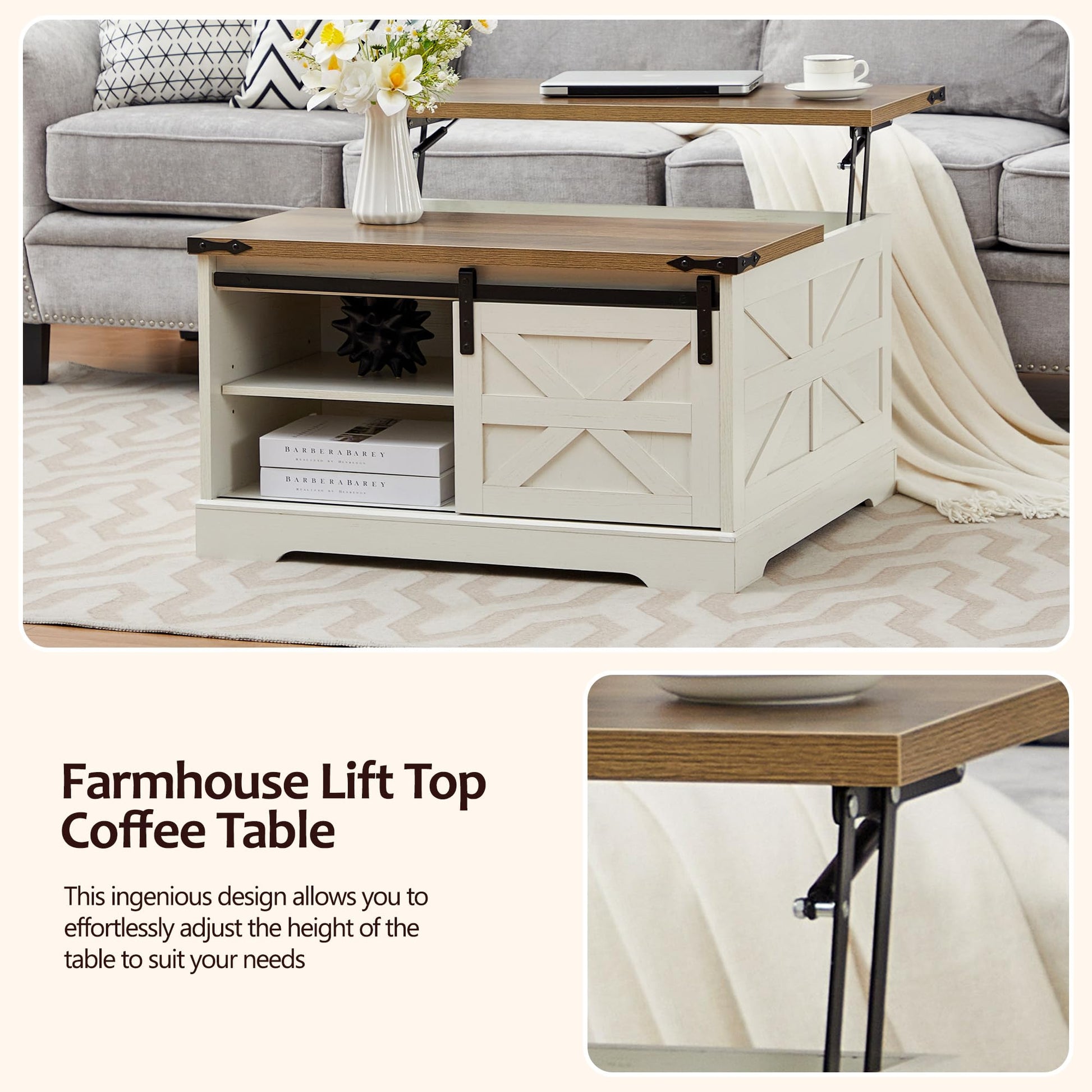 Tltaroni Farmhouse Lift Top Coffee Table,Wood Square Coffee Table with Sliding Barn Door and Adjustable Shelf Rustic Center Table with Hidden Storage Compartment for Living Room