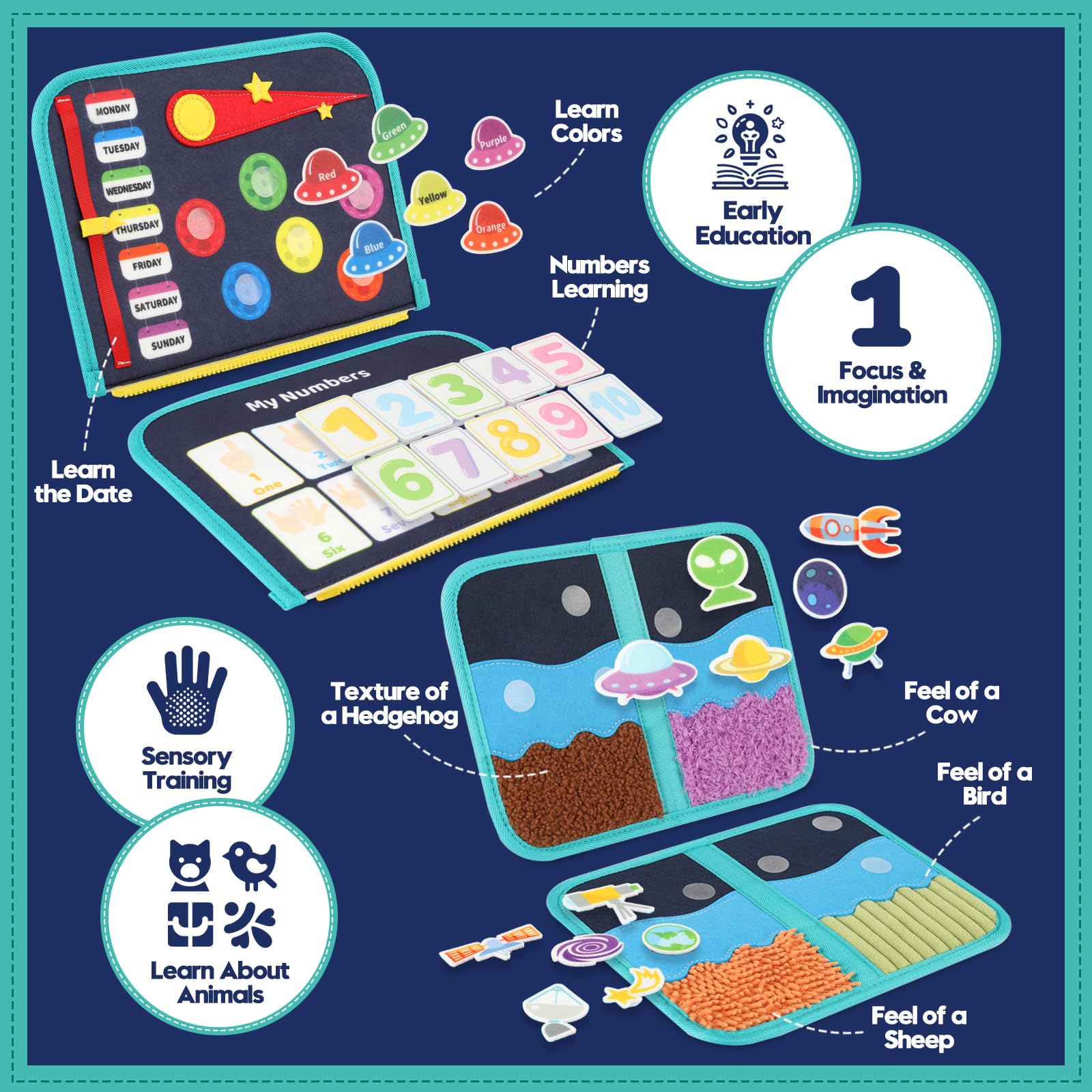 - CONVENIENT & PORTABLE TRAVEL TOY: Made from soft, edge-free materials, our sensory book for toddlers 3 years and older is lightweight and has a handle, making it easy to carry in a diaper bag or school bag. Perfect for keeping kids happy or quiet during flights, car rides