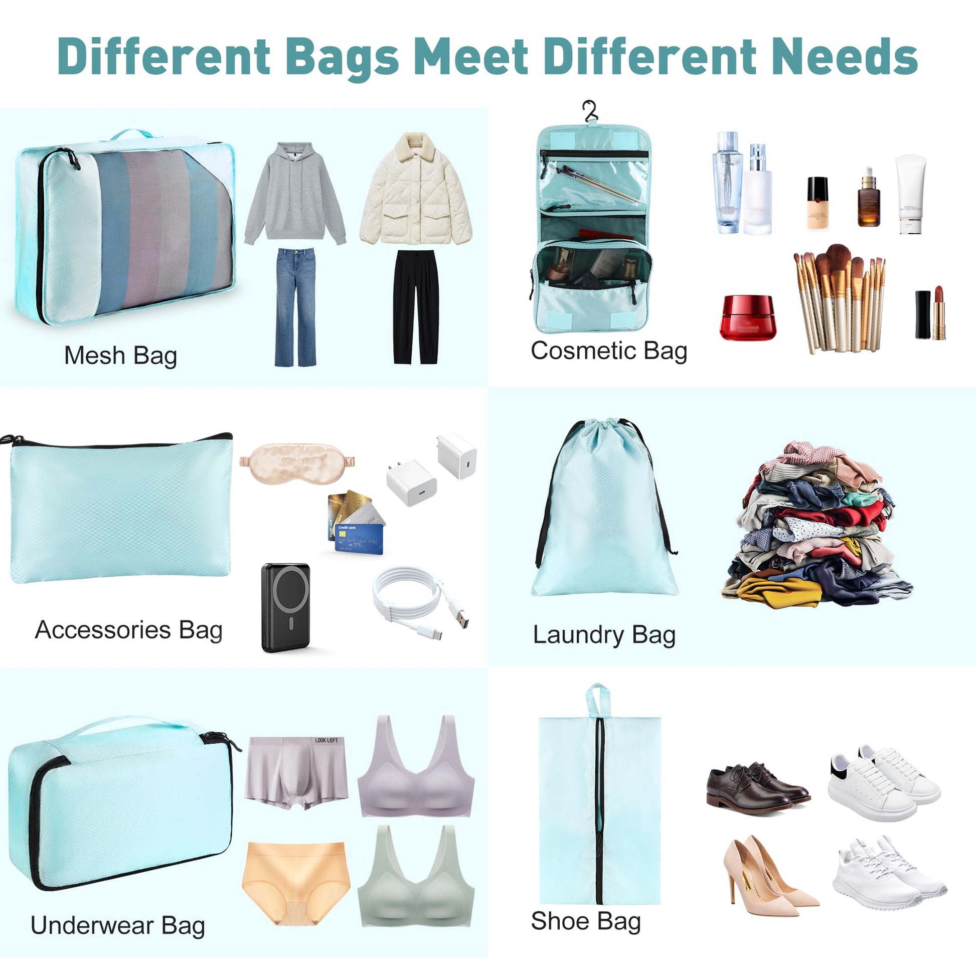 - Versatile Travel Organizers: Whether you're using them as packing cubes for men, women, or kids, these travel bags organizers fit in suitcases, backpacks, and duffel bags. Ideal for vacations, hiking, and business trips, they're the ultimate luggage packing cubes for travel