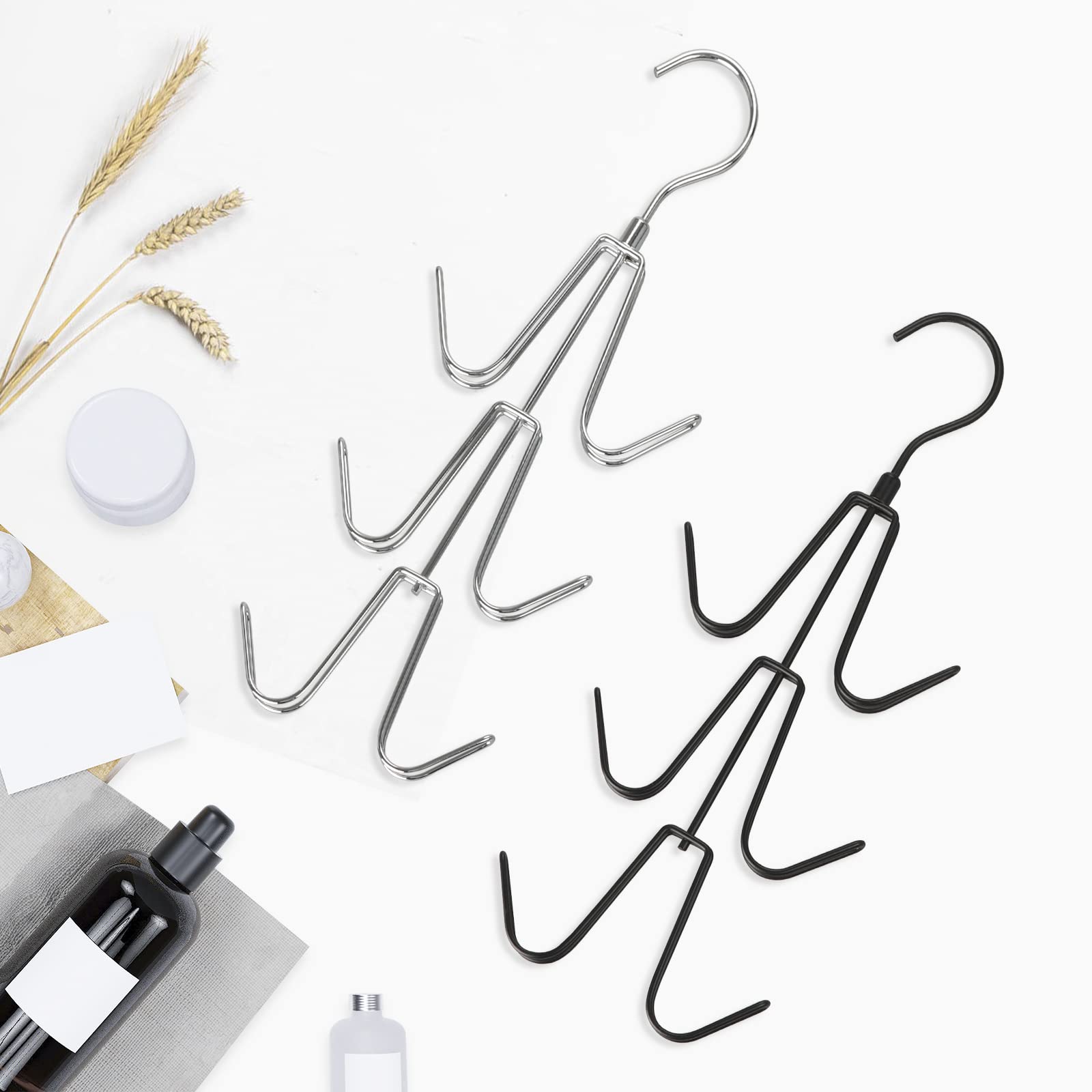 TOPIA HANGER Purse Hanger Organizer for Closet, 2-Pack Handbag Organizer Hanger, 360°Swivel Metal Purse Hooks, Bag Rack, Belt Organizer, Tie Rack, Scarf Hanger, Bag Storage Organizer, Silver