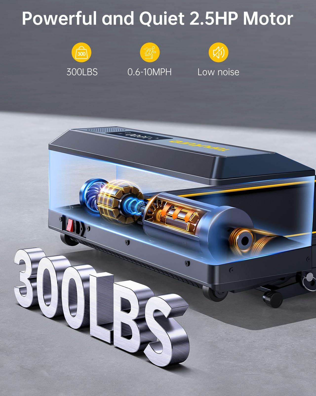 - 🏃♀️【2.5Hp Powerful Low Noise Motor】This walking pad treadmill is equipped with a powerful 2.5HP motor and it can provide a load-bearing weight capacity of up to 300lbs. With the shock absorption design, you can use this quiet treadmill to exercise at home, apartment or in the office without disturbing anyone.