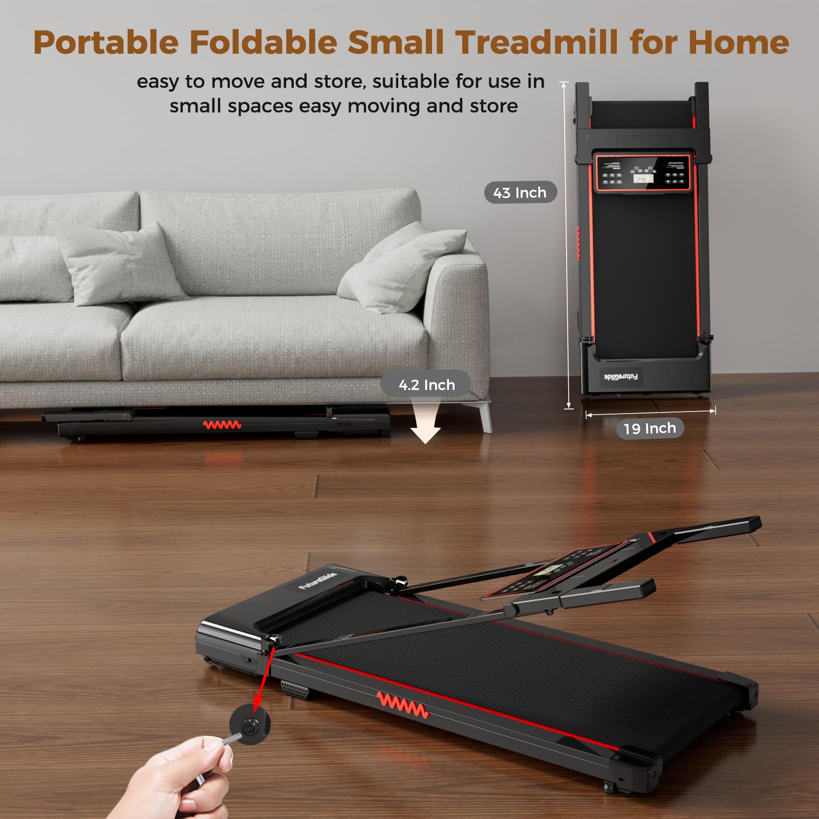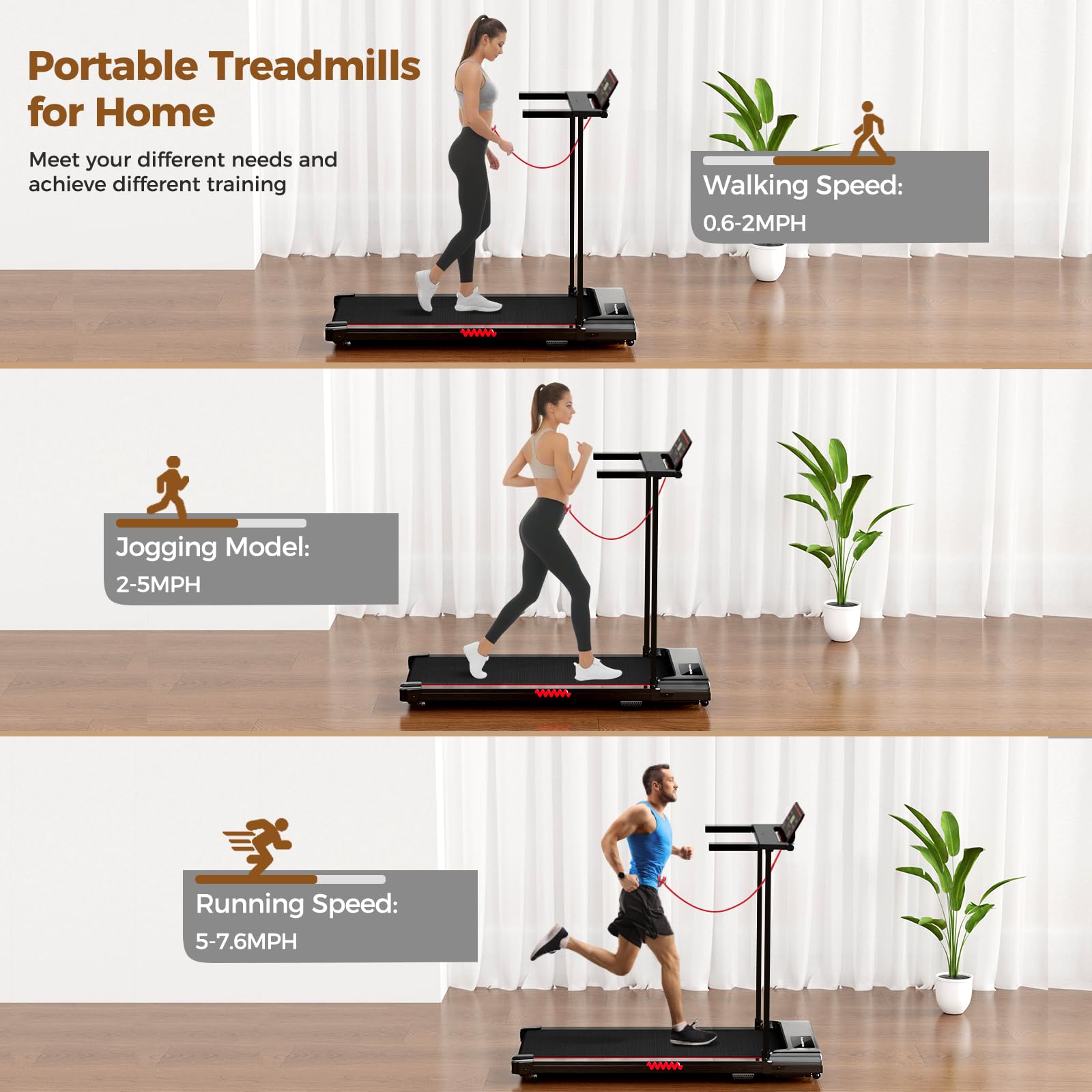 Treadmill with Handle, 3.0HP Treadmills for Home Small Spaces,Electric Portable Foldable treadmills with LED Display, Walking Pad Treadmill with Handle,Compact Walking Treadmills with 320 LBS Capacity