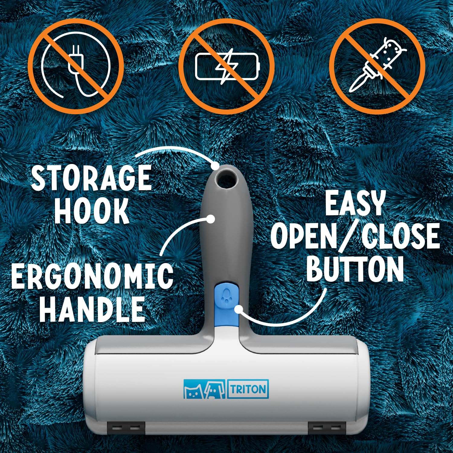 Triton Pet Hair Remover w/Fur Trapping Compartment - Easy to Use Pet Hair Removal Tool - Cat & Dog Hair Remover for Couch, Furniture, Clothes, Bedding, Car - Reusable Lint Roller