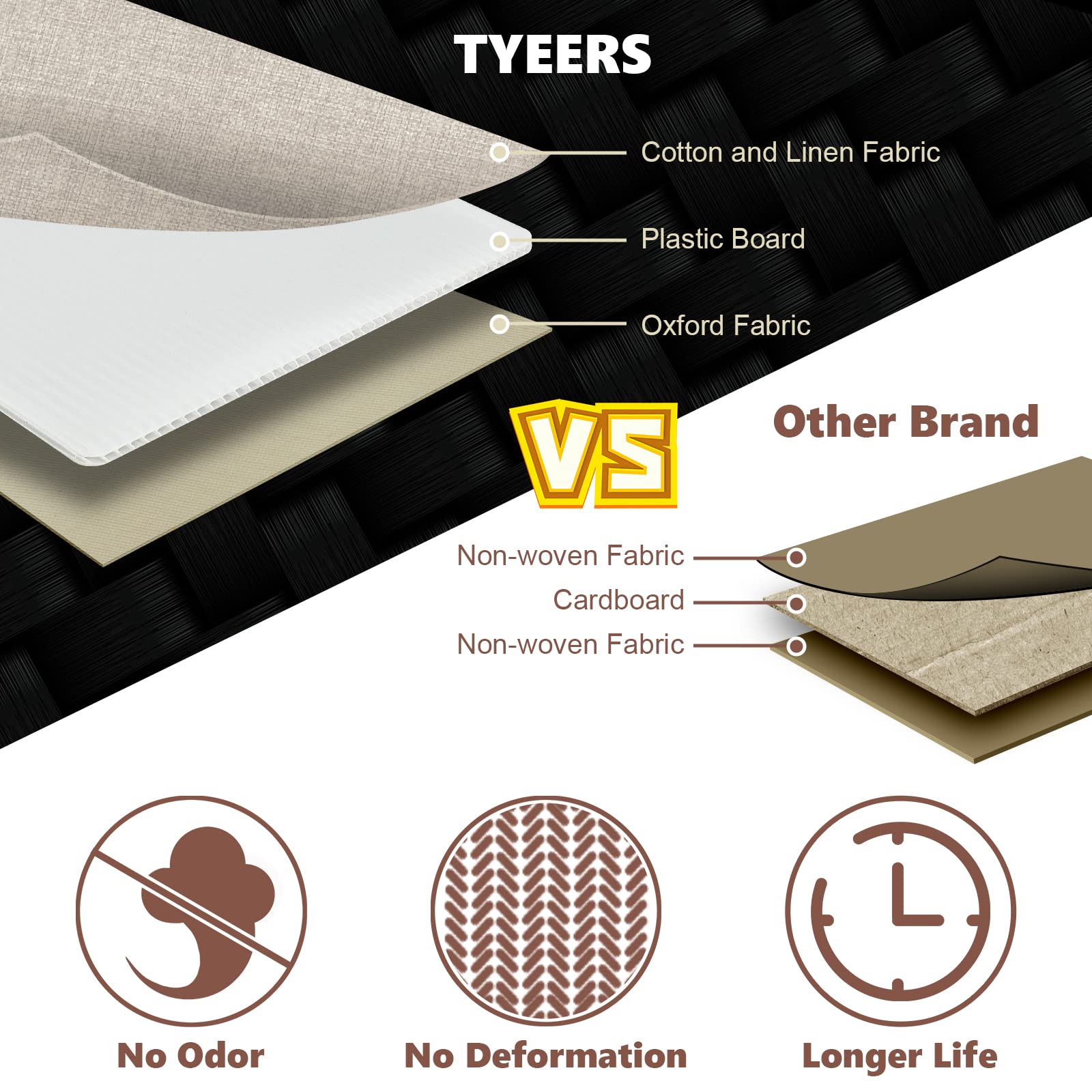 - Polyester fabric for the outer surface, Oxford fabric for the lining, more durable than other storage bins made of non-woven fabric. Plastic boards for insert, no odor and don't deform easily after long-time use compared with other carboard boxes.
