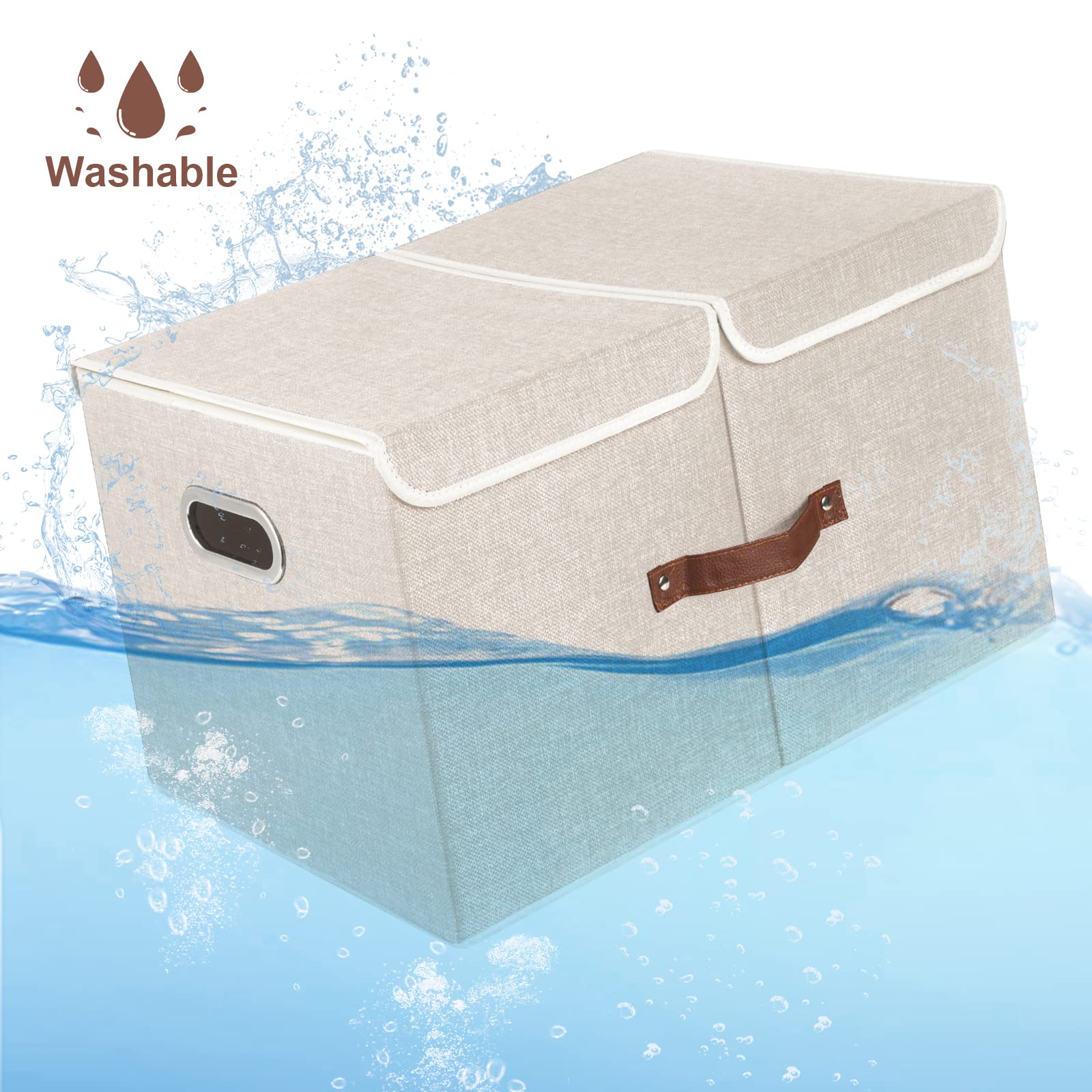 TYEERS Extra Large Collapsible Storage Bins with Lids and Compartments, Washable, Fabric Storage Boxes, 21.7x13x11.8 inches, 2 Pack, Beige