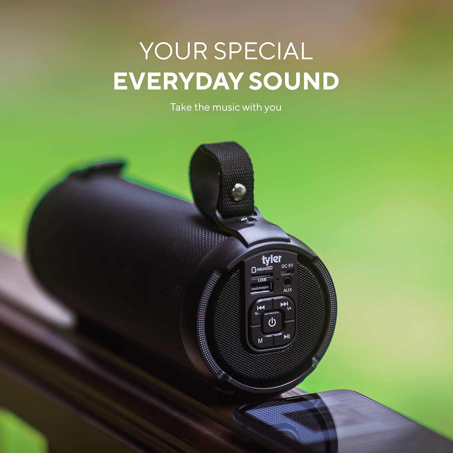 Tyler Wireless Bluetooth Speaker Water Resistant Long Range Rechargeable Boombox USB MP3 Micro SD AUX Inputs Fm Radio Sound & Bass Carry Strap Lightweight for Home Outdoor Stereo