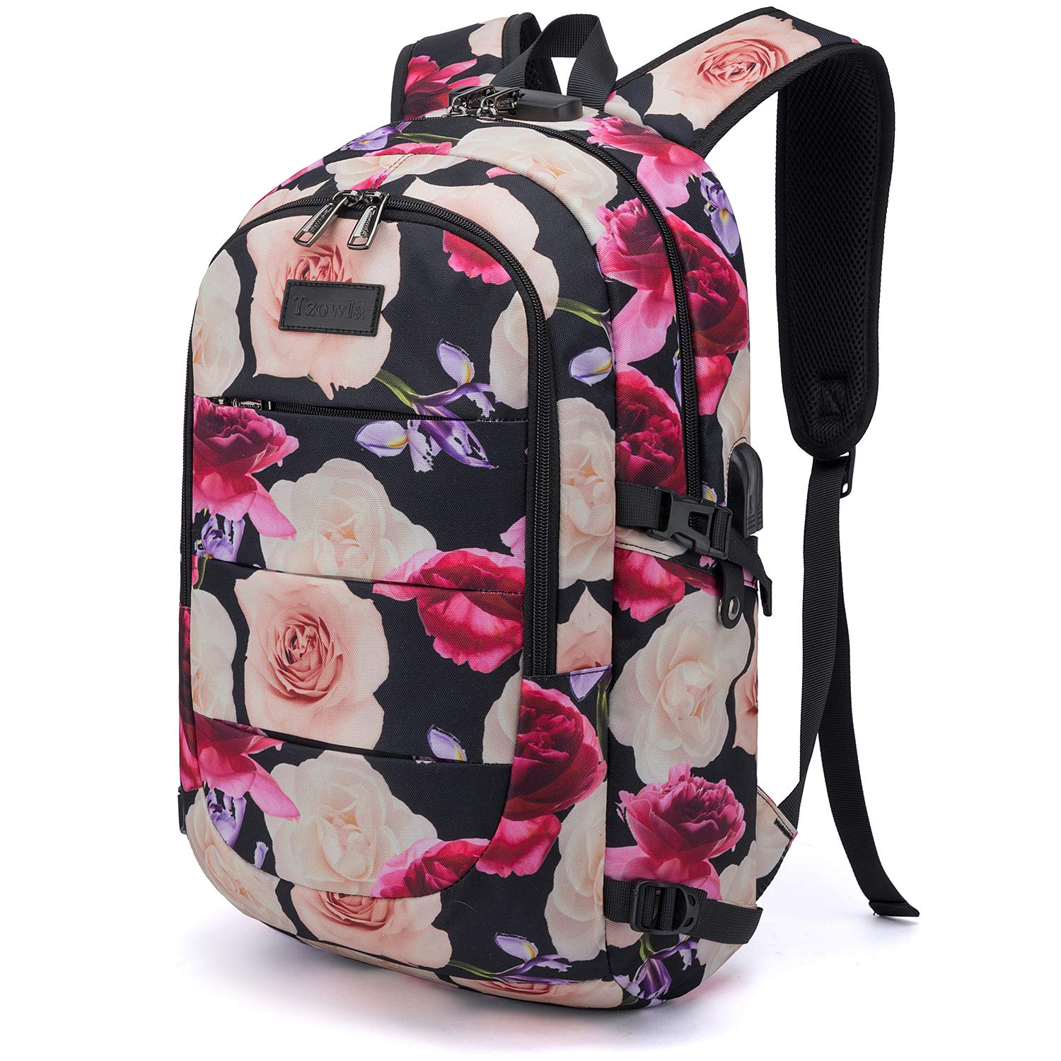Tzowla Business Laptop Backpack Water Resistant Anti-Theft with USB Charging Port and Lock 15.6 Inch Computer Backpacks for Men, Women, Casual Hiking Travel Daypack (Flower)