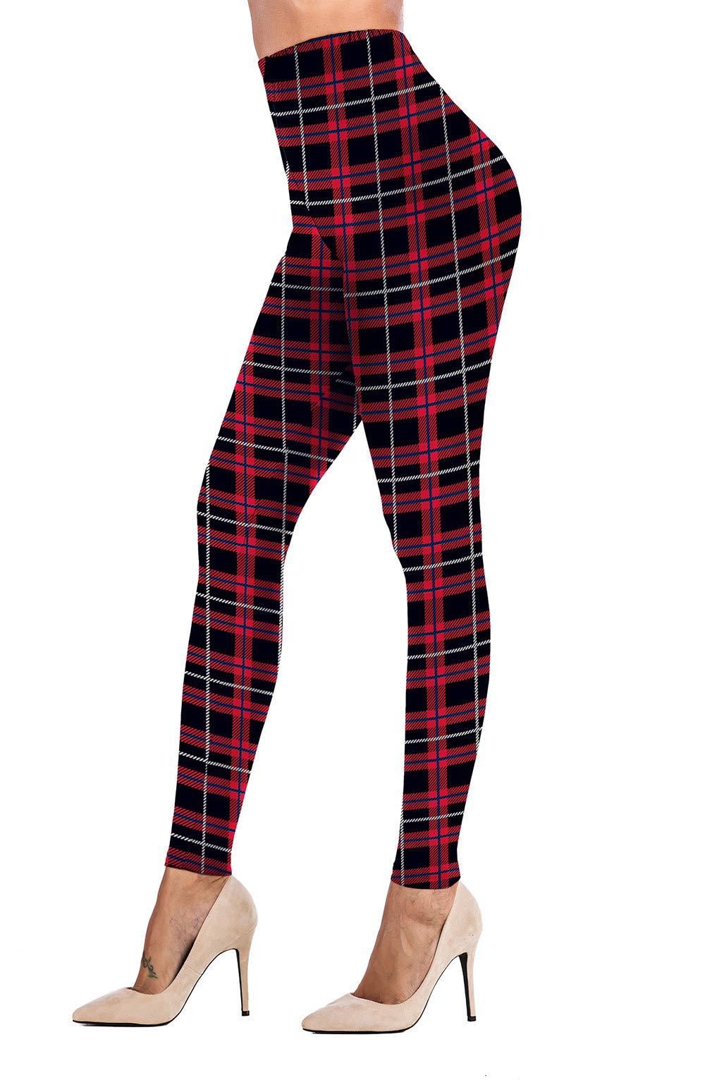 Uaderize Womens Ultra Soft Brushed Christmas Leggings Pants Red Plaid Patterned L