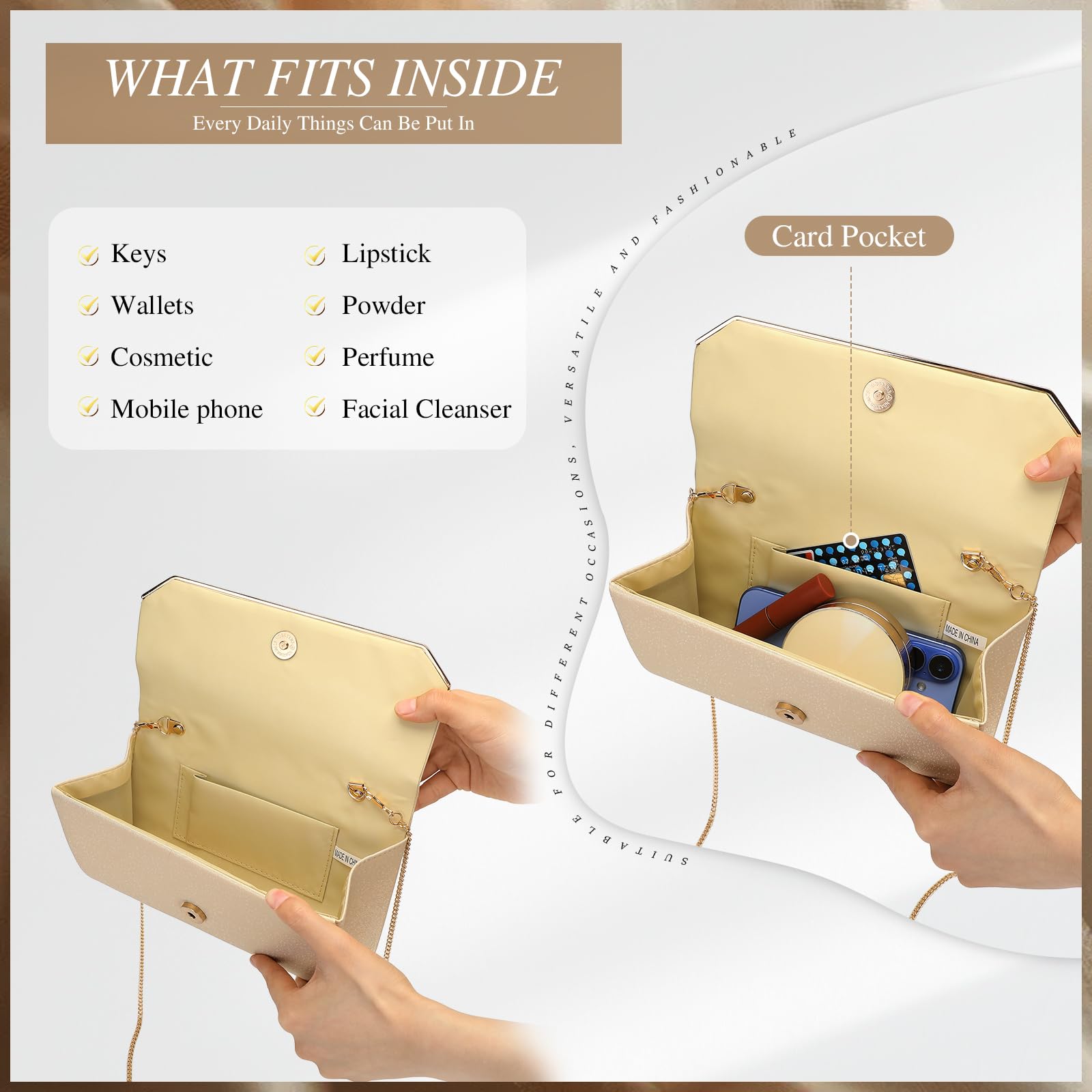 - Perfect for Special Events: This gold clutch purses designed for milestone moments—from weddings and parties to business cocktails—this clutch elevates your ensemble with timeless grace and polished charm