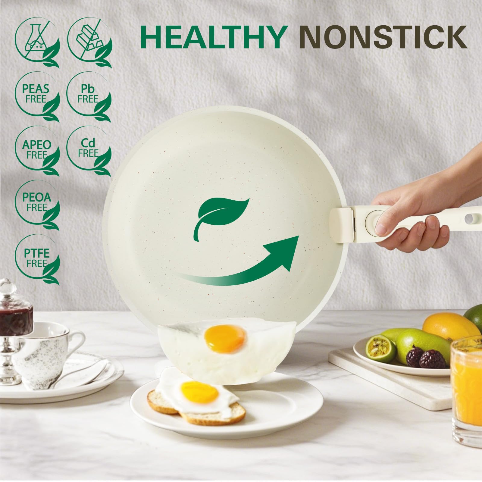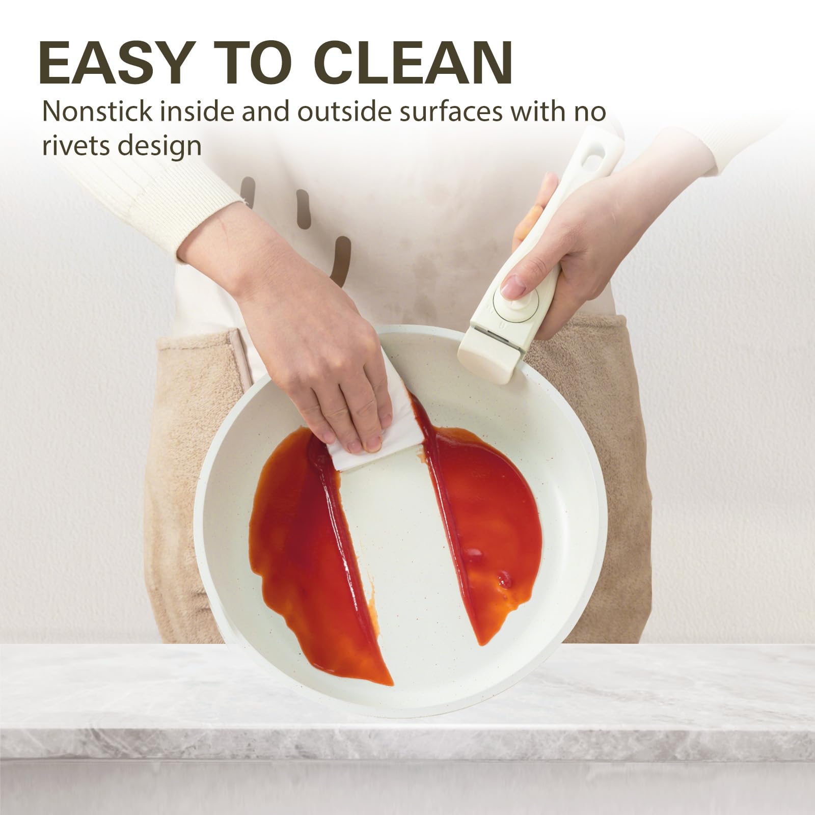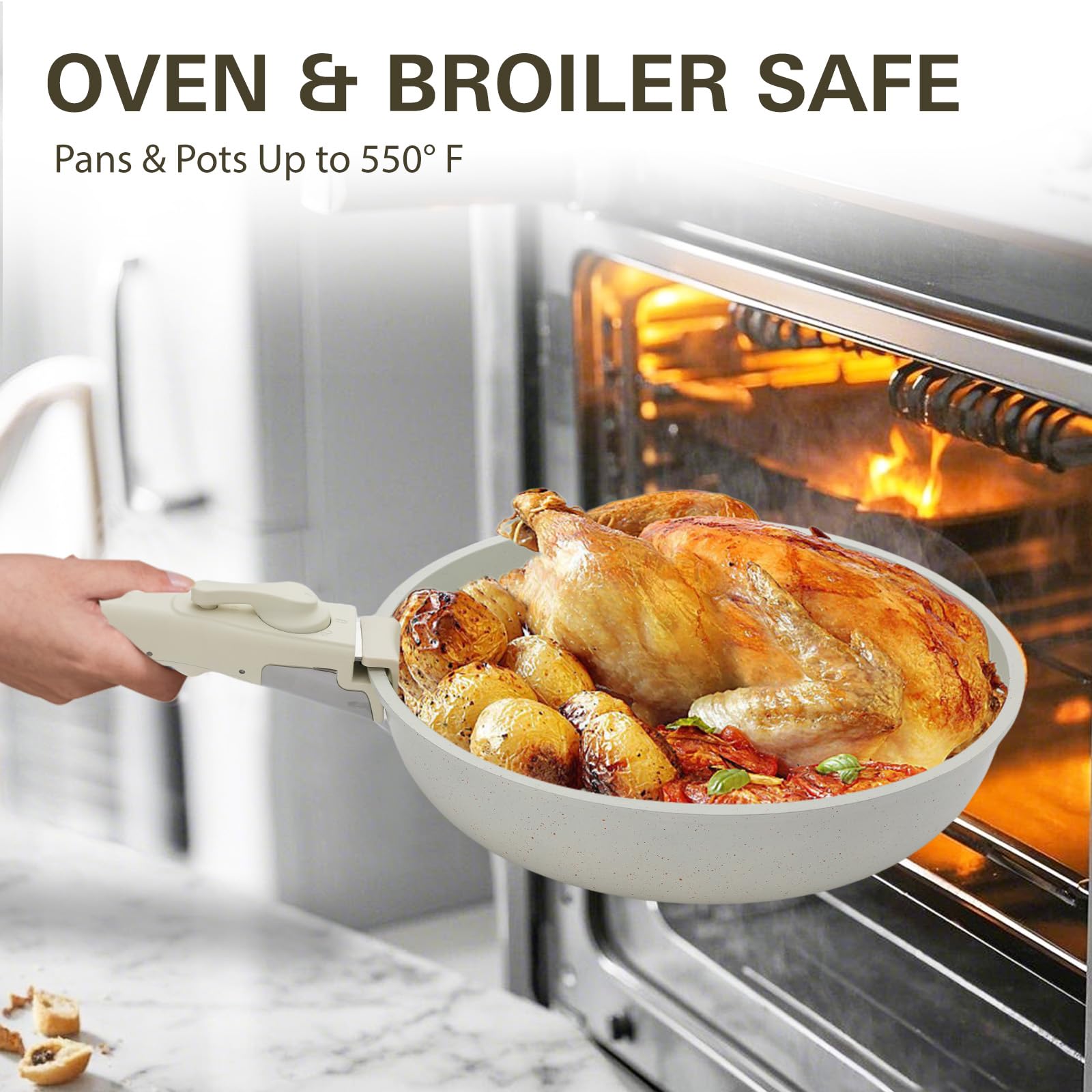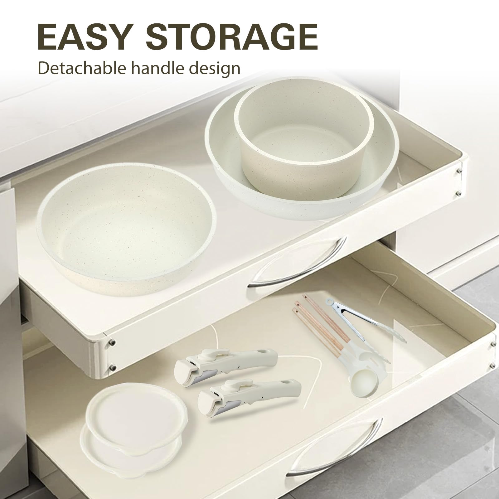 - Effortless Storage- Featuring detachable handles and stackable design, Removable with just a tap, this cookware saves 70% kitchen space when neatly stored in cabinets or drawers - perfect for compact kitchens, RVs and campers.