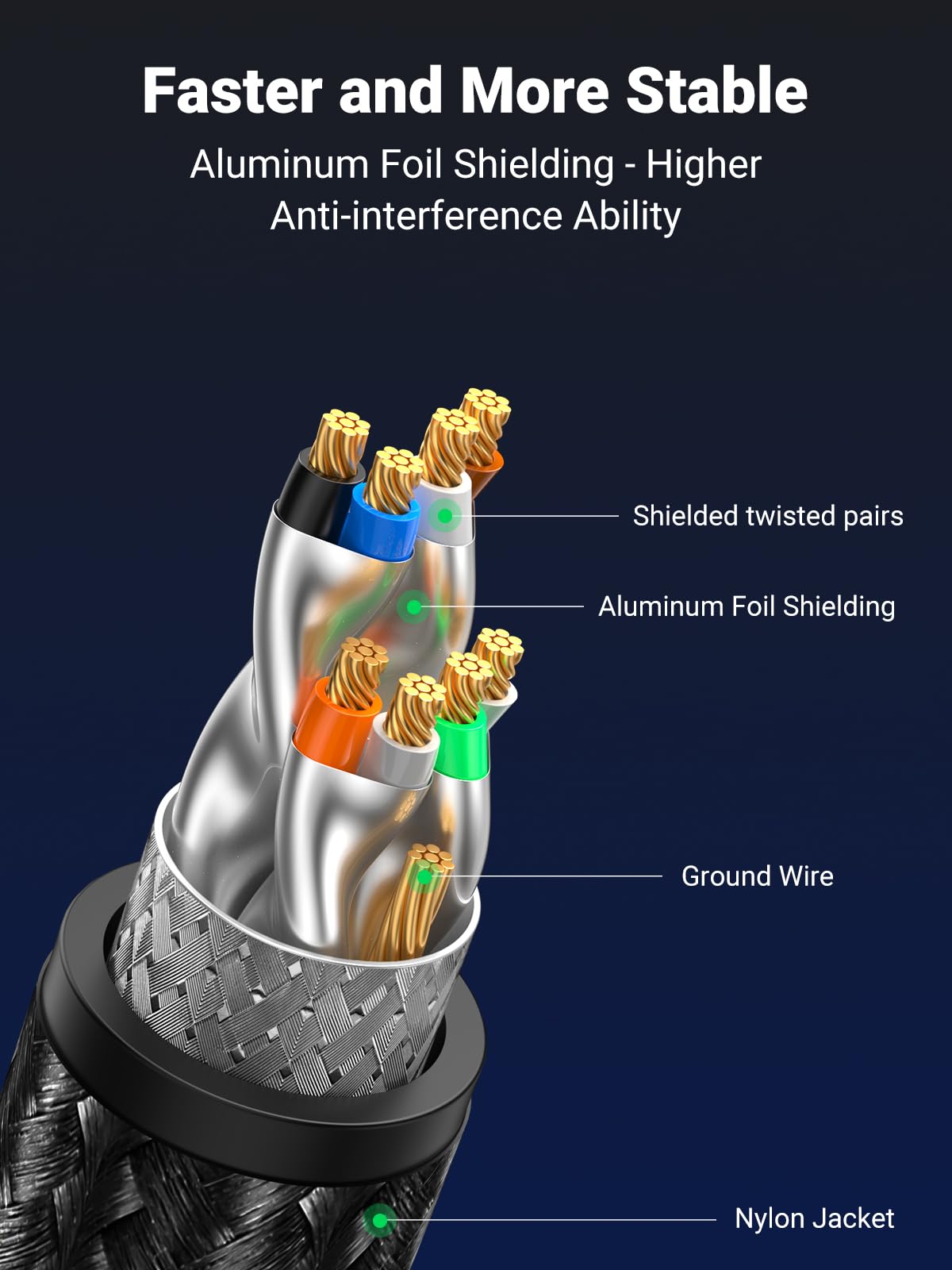 - Excellent Anti-interference: The Ethernet cable comes with 4 shielded foiled twisted pairs (F/FTP), pure copper core and gold-plated RJ45 connector, reducing interference, noise and crosstalk, making network speed faster and more stable