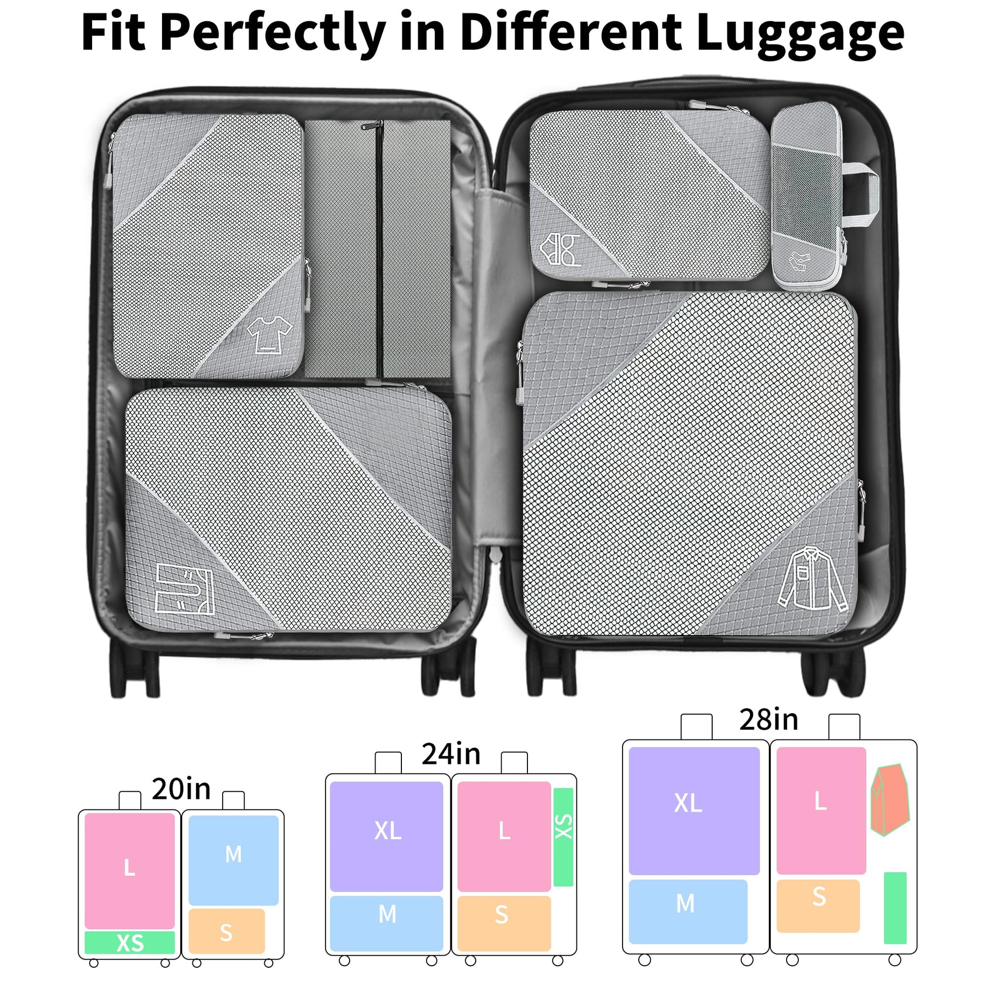 Ultralight Suitcase Organiser Bags Set - 6 Expandable Packing Cubes for Travel Essentials, Carry-on Luggage Suitcase (Grey)